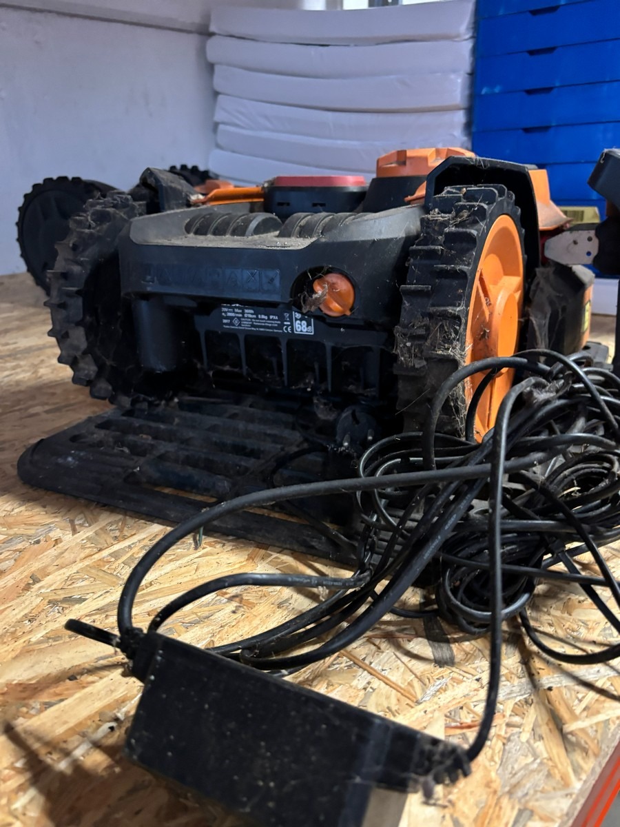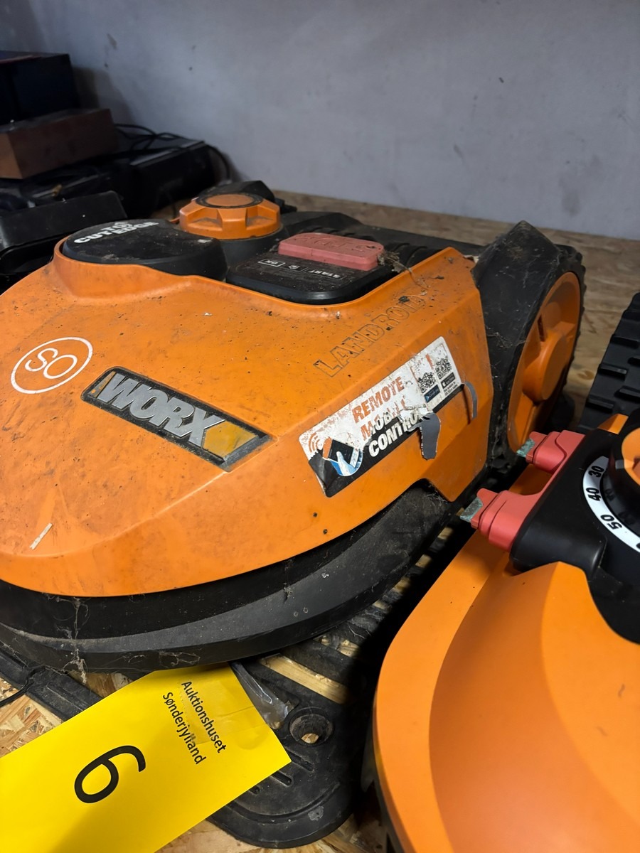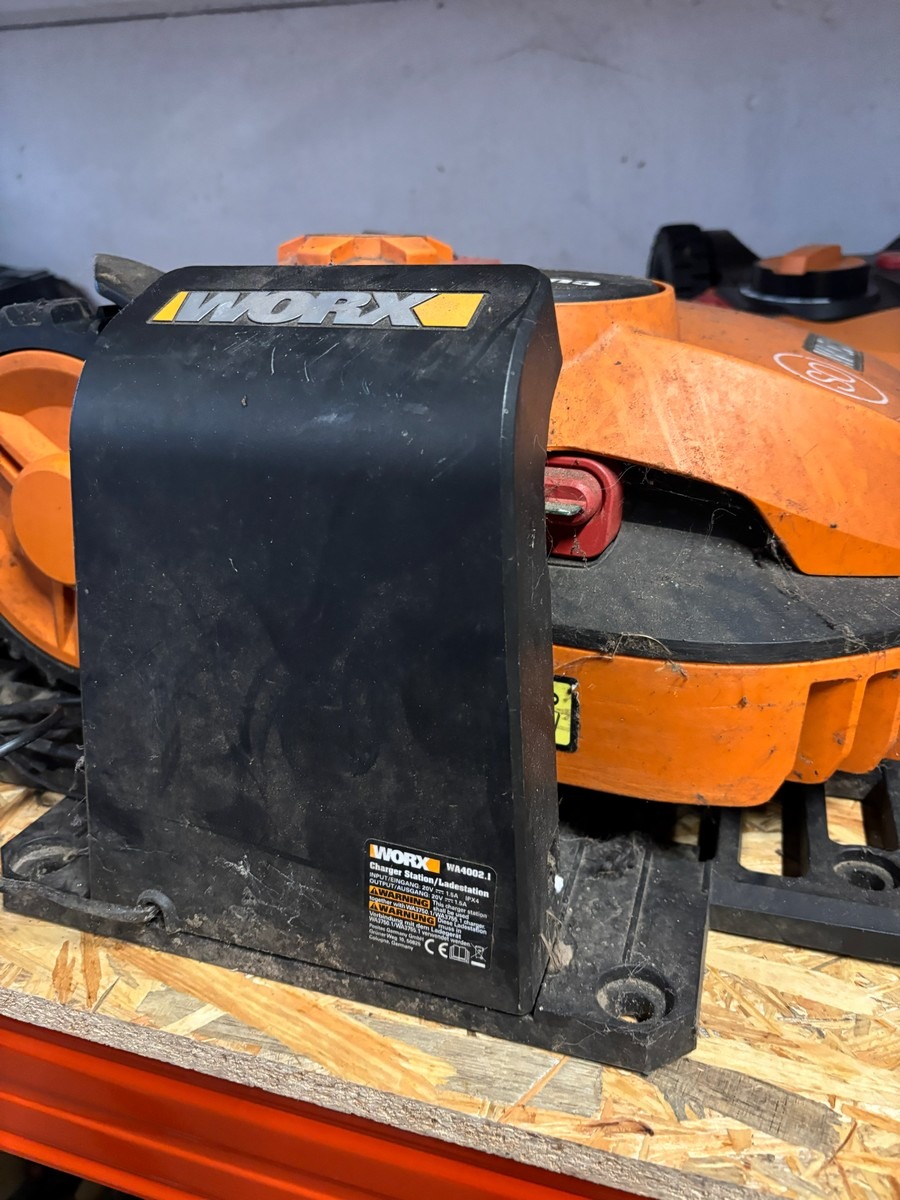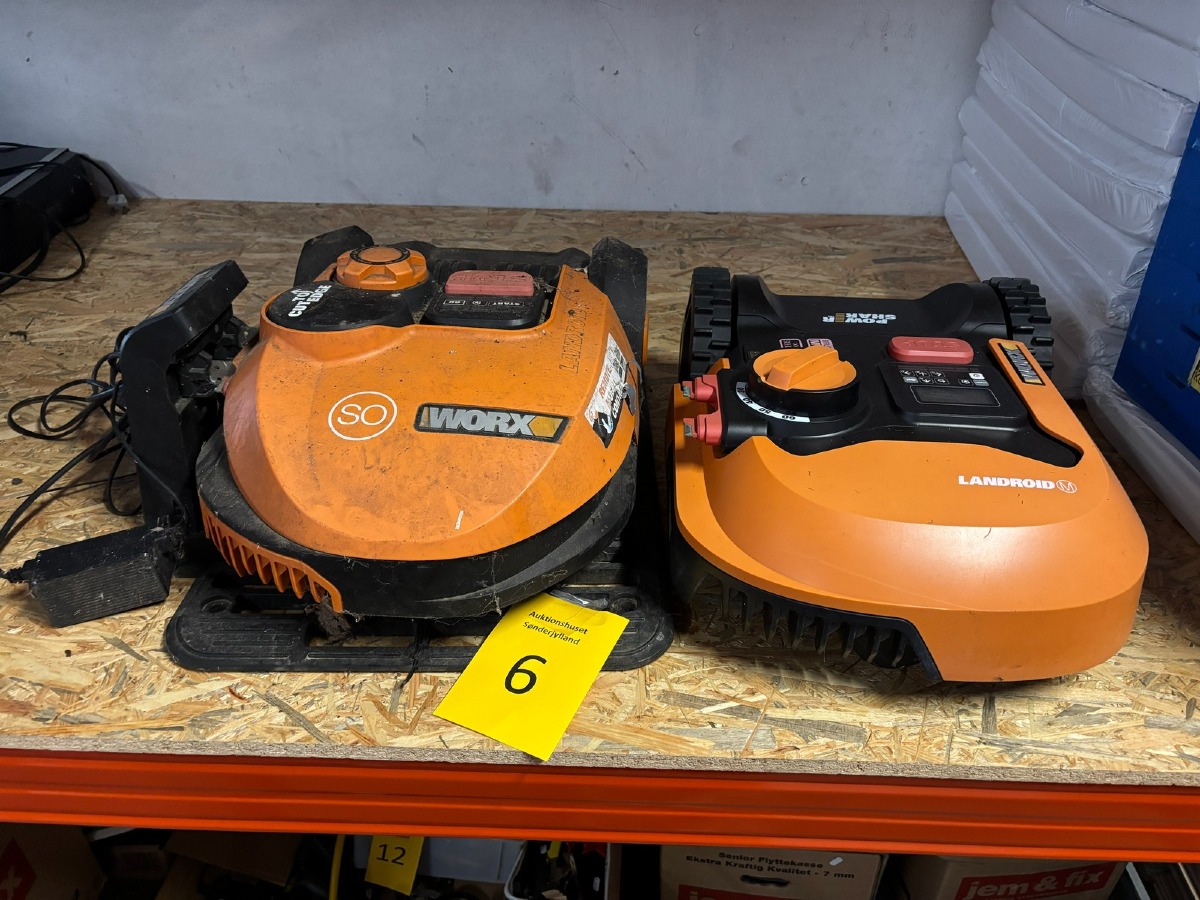 2 stk. Worx robotplæneklipper med en lader. Model WA4002.1. Græsset var slået i boet og maskinerne har stået som de har kørt denne sæson. De er ikke testet ellers. Fra dødsbo