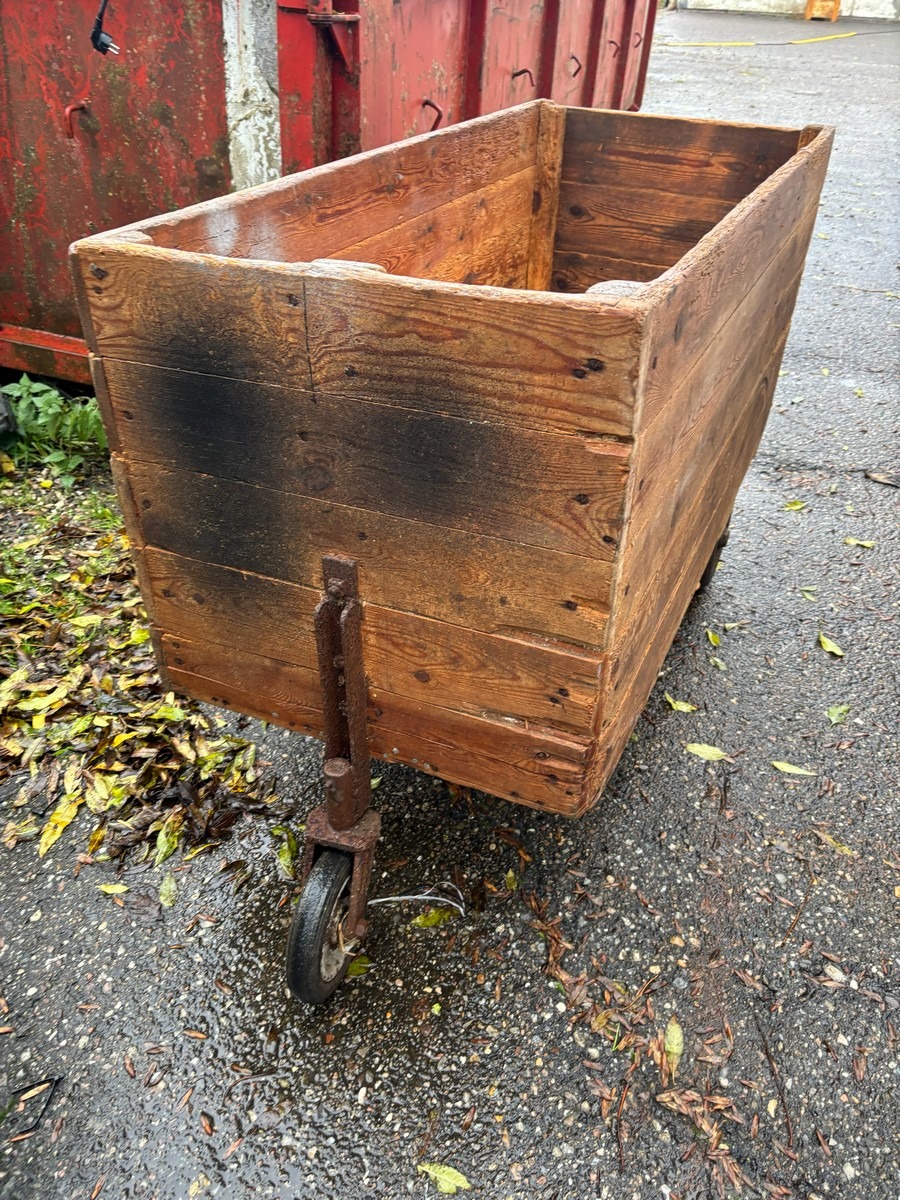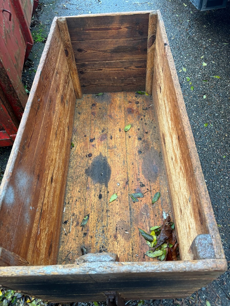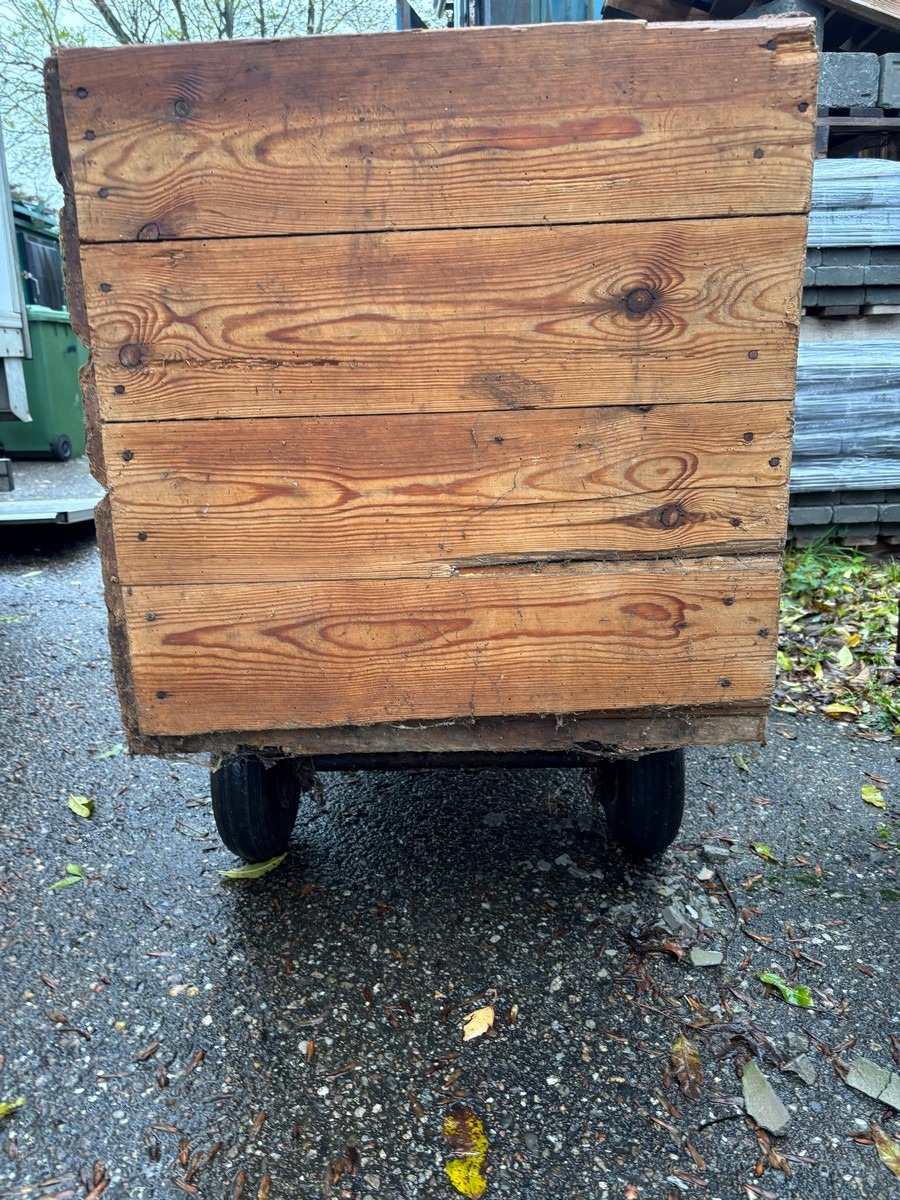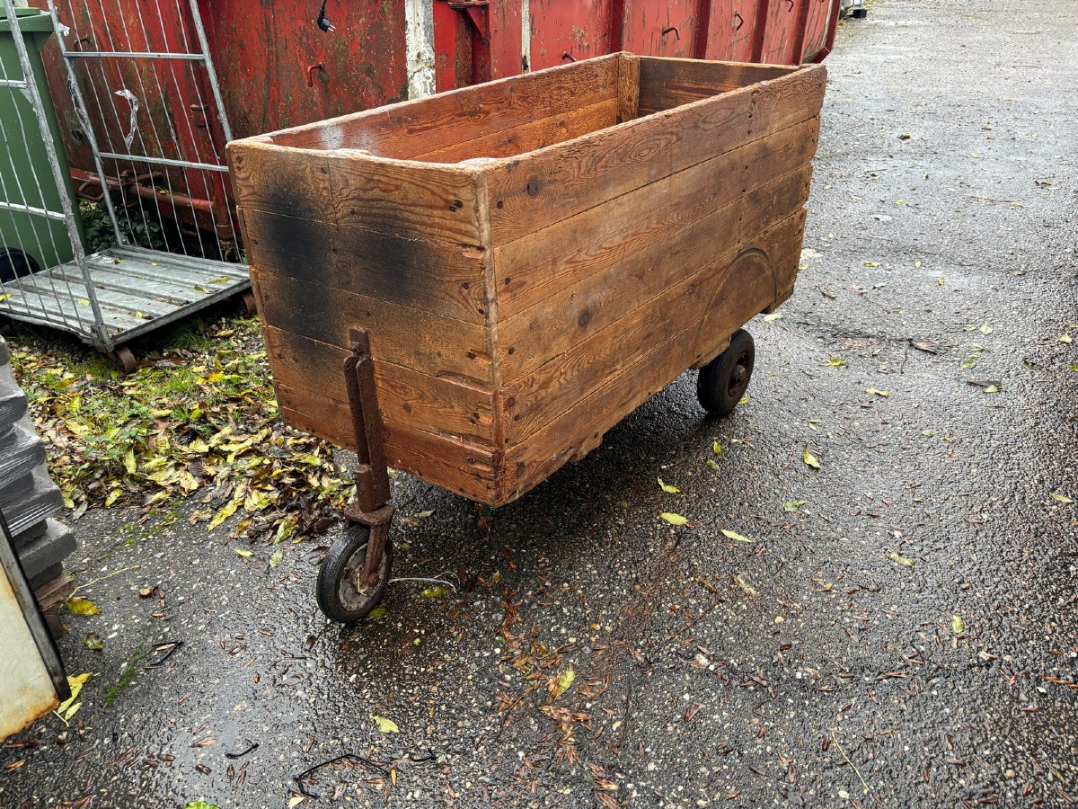 Ældre fodervogn. Står udenfor og trænger til en service. Fra dødsbo