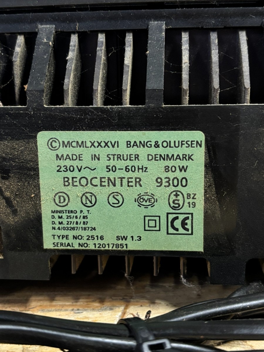 Bang & Olufsen Beocenter 9300 med fjernbetjening. Ikke testet og fra dødsbo