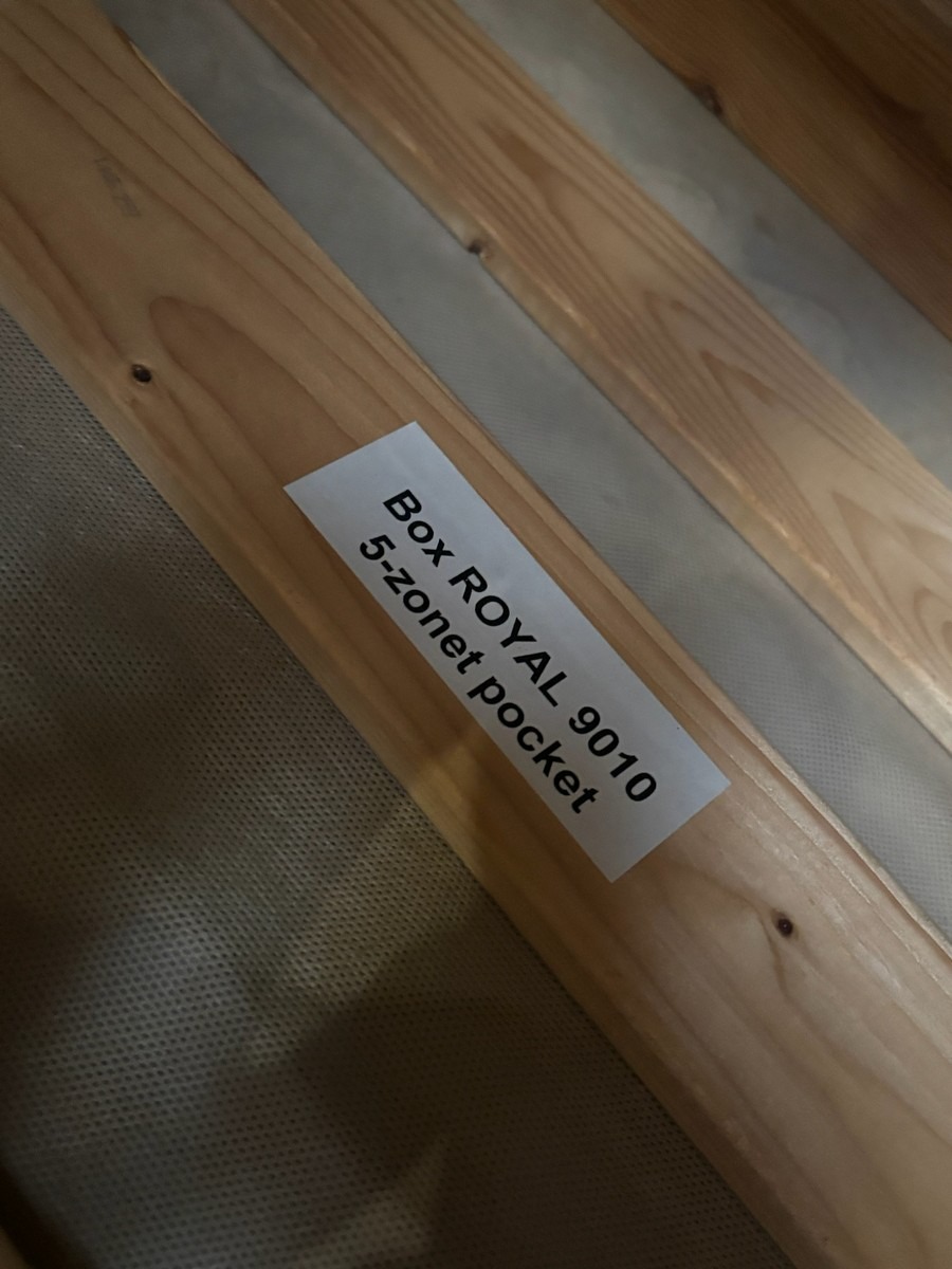 Box royal 9010 5-zonet pocket Box madras. Måler : 90 x 200 cm. Fremstår i pæn stand. Fra dødsbo