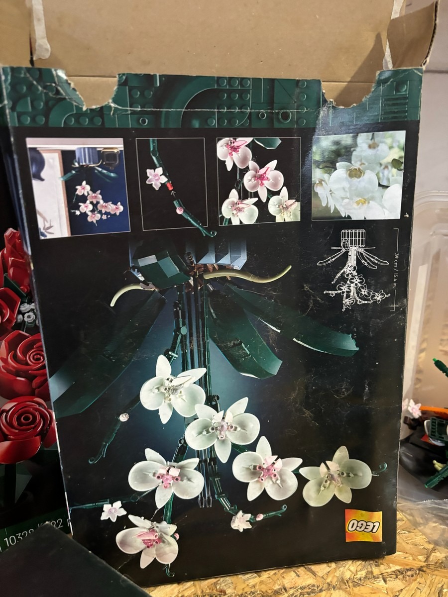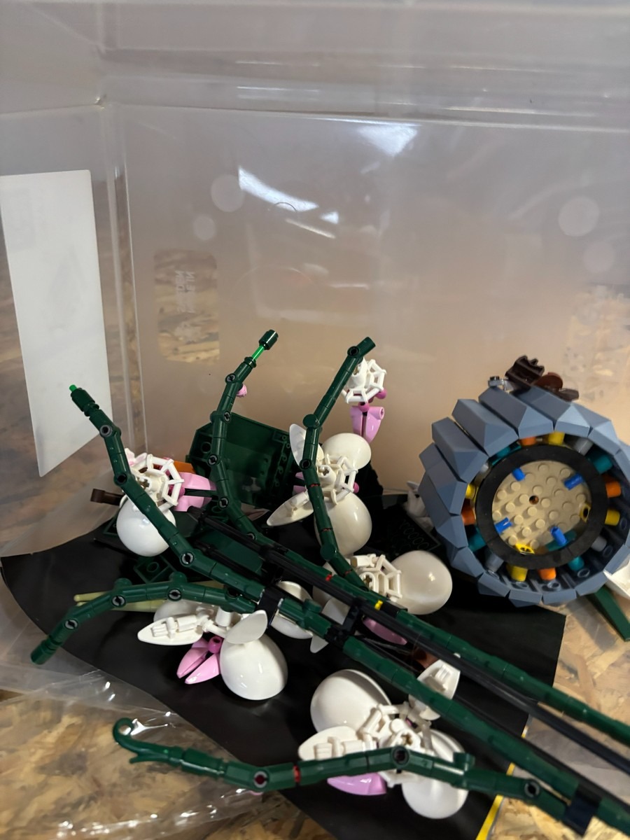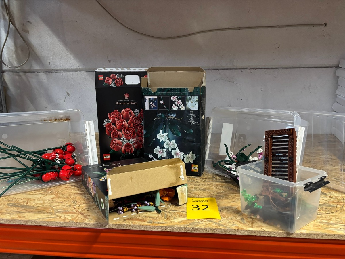 Lille parti lego med diverse blomster motiver. Bemærk at 2 af de originale kasser er tomme og det er der ligger i de hvide kasser. Fra dødsbo