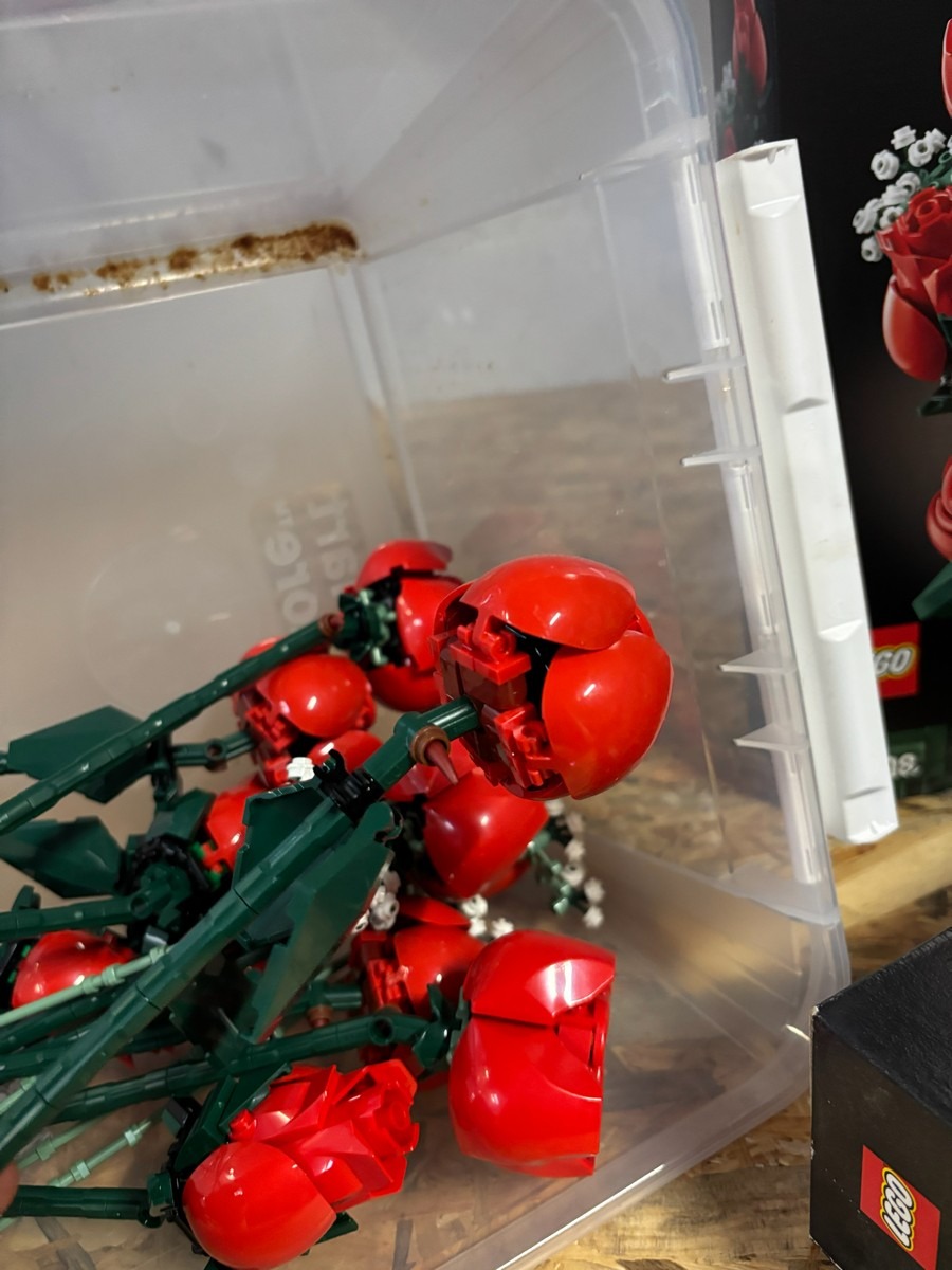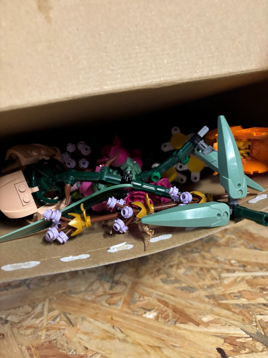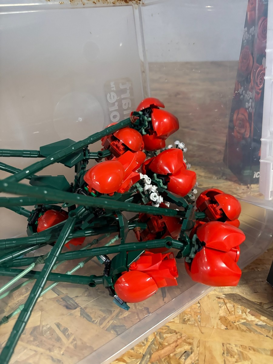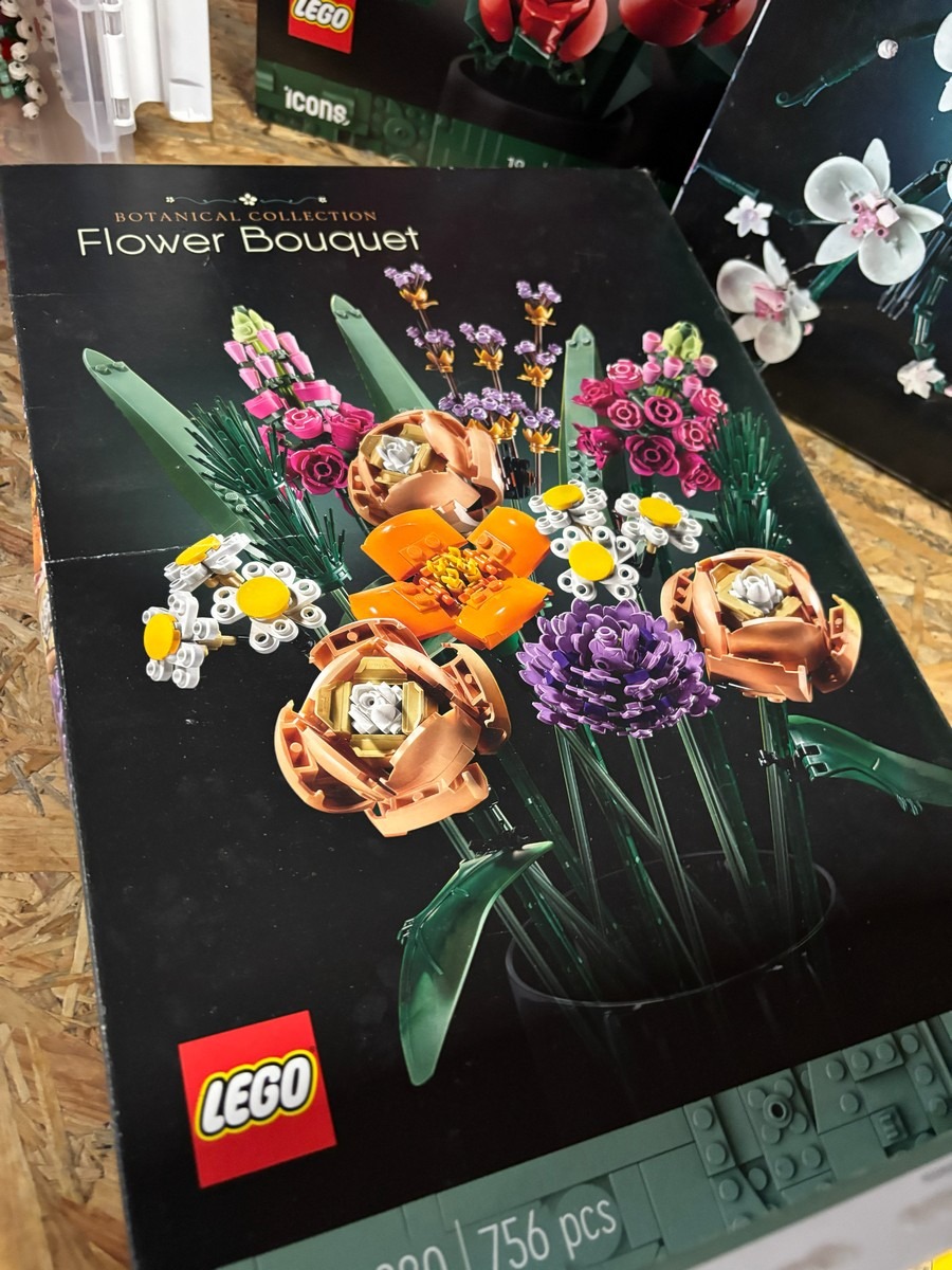 Lille parti lego med diverse blomster motiver. Bemærk at 2 af de originale kasser er tomme og det er der ligger i de hvide kasser. Fra dødsbo