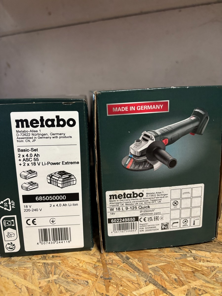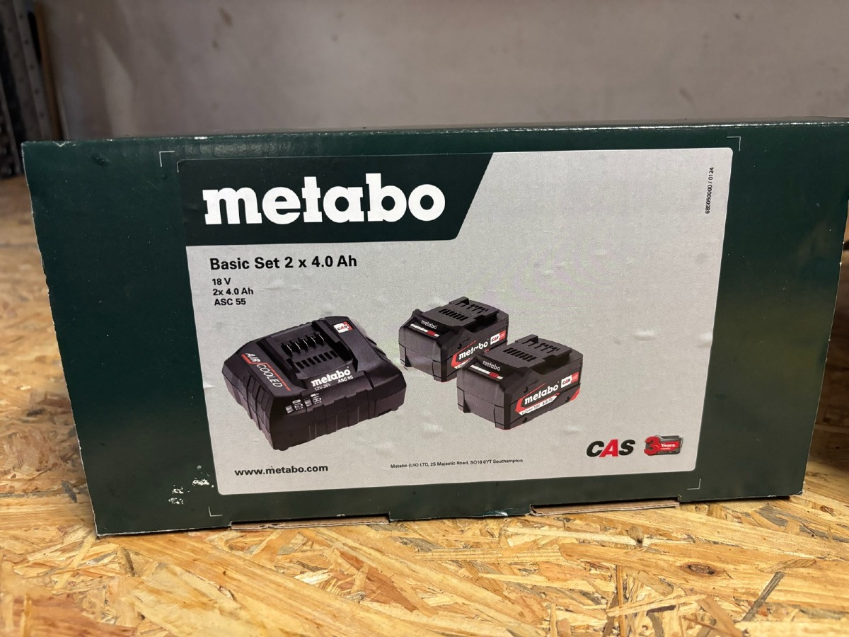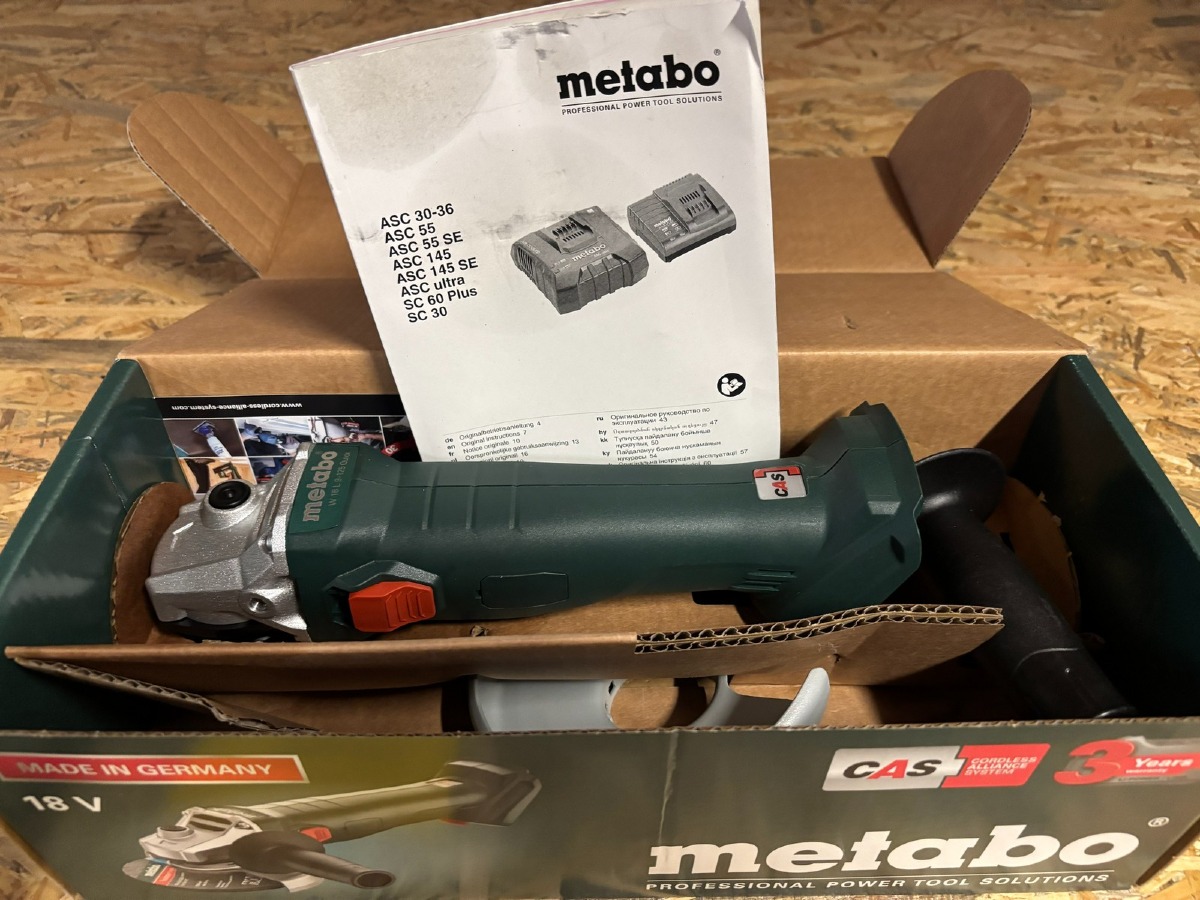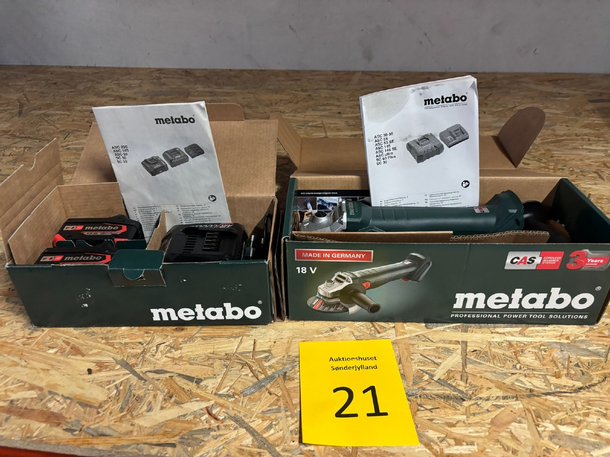 Metabo vinkelsliber & batterisæt med lader (Ubrugt). Fra dødsbo