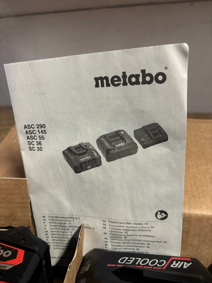 Metabo vinkelsliber & batterisæt med lader (Ubrugt)