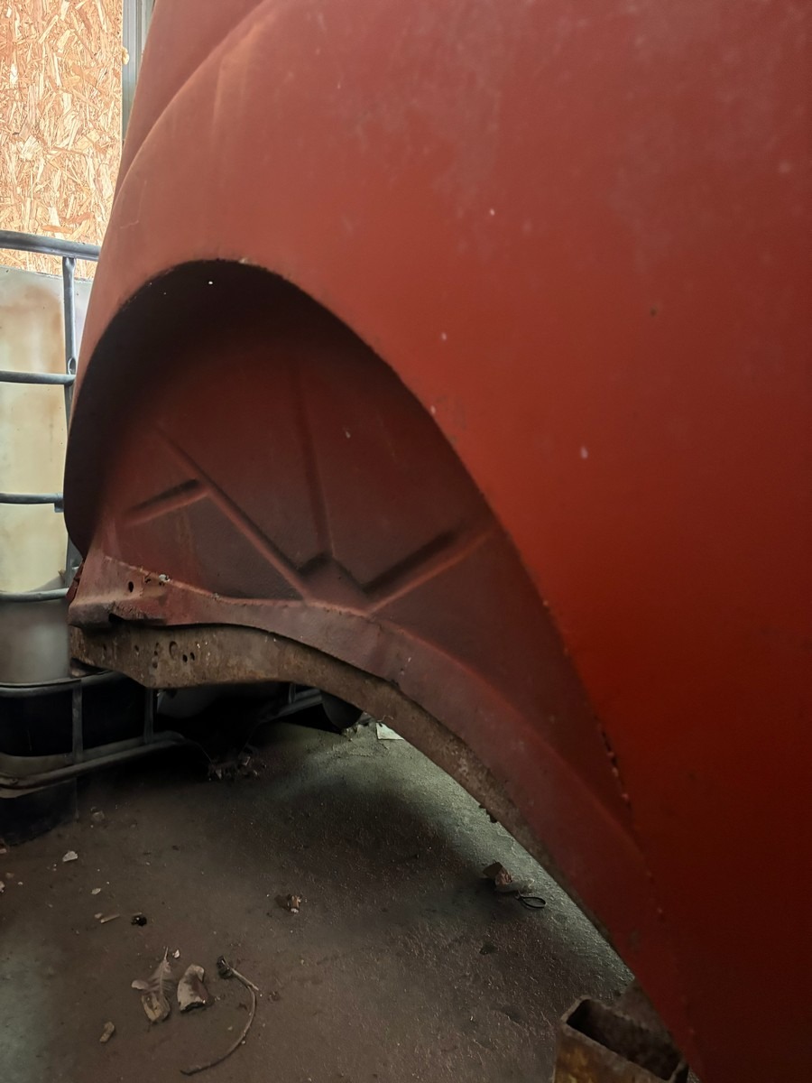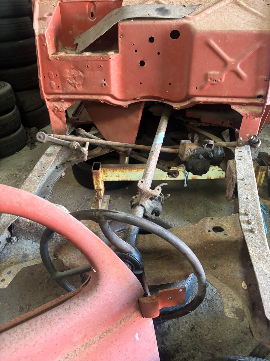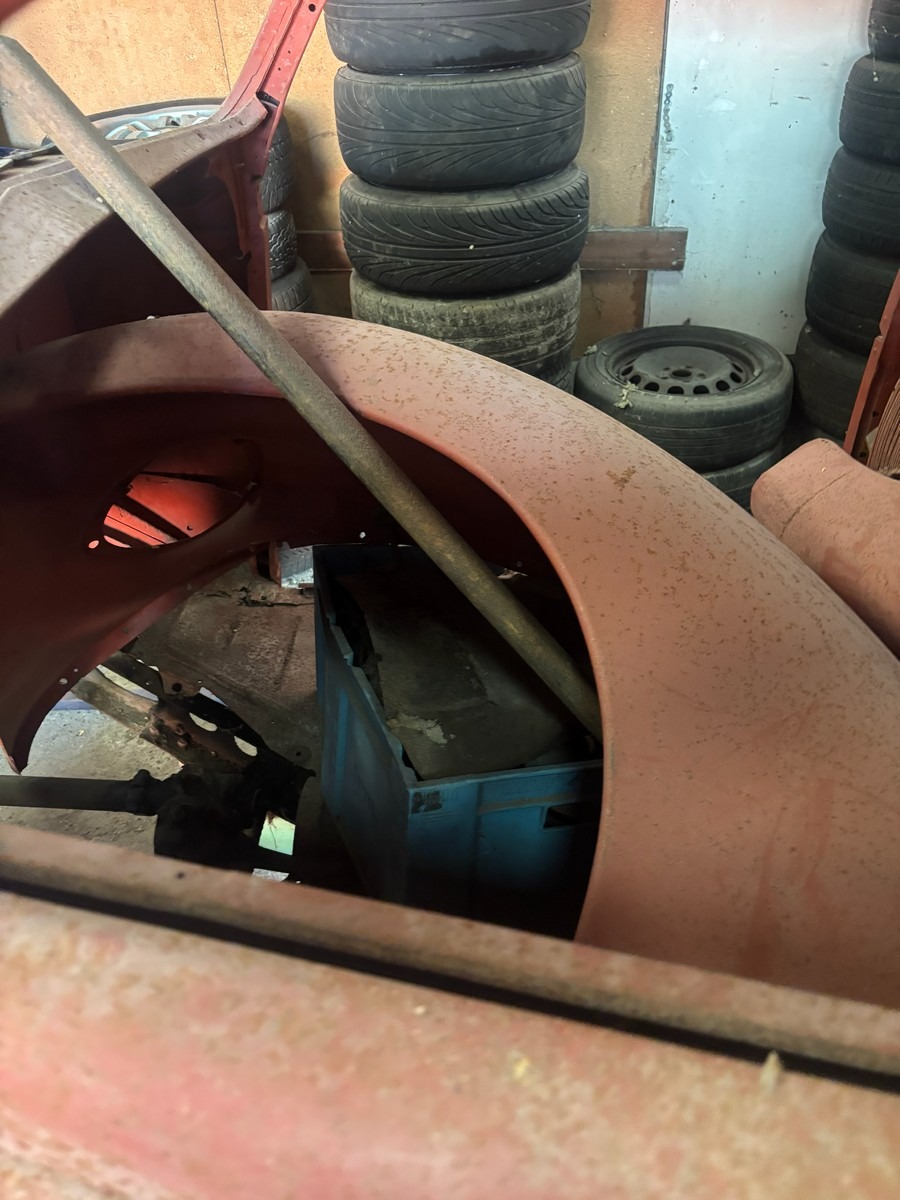 Ford Slanteback projekt med diverse dele. Uden papir. Står på rullestativ.