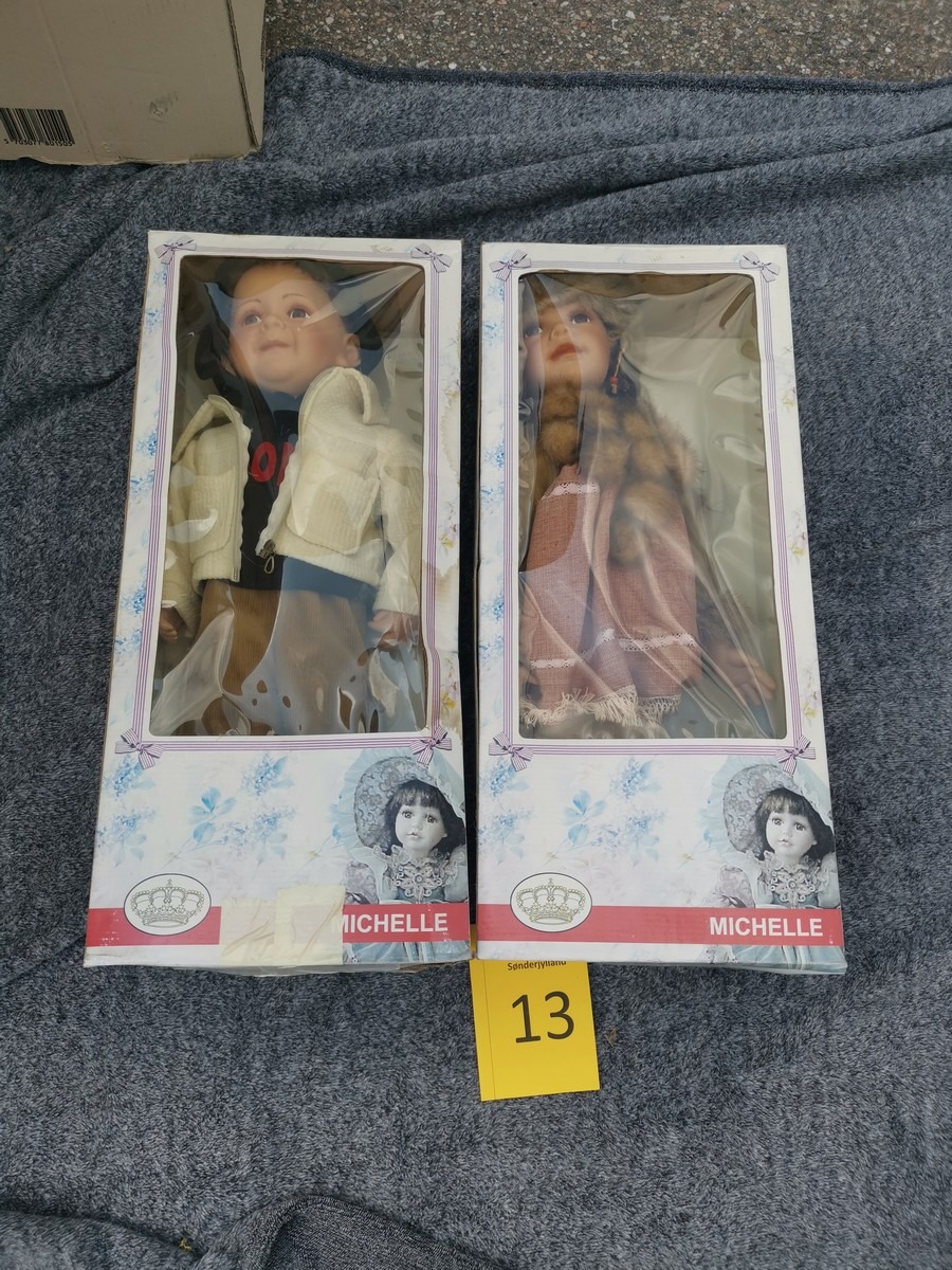 Lille parti dukker. Forskellige slags, str og stand. Ok stand og uden synlig lugt. Lottet står i en flytekasse. Fra en større samling fra et dødsbo.