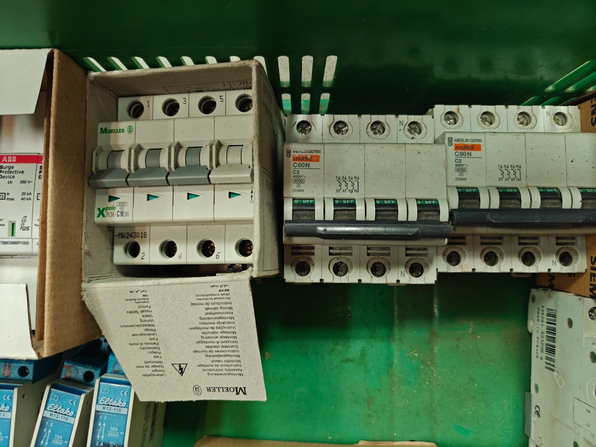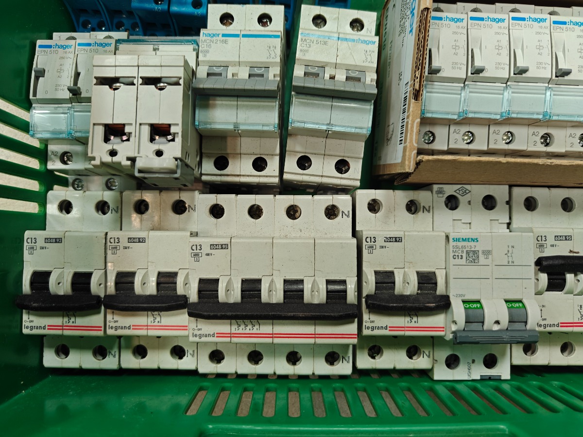 Parti eltavler & automatsikringer i 10 , 13, 16, 32 amp, hfi afbrydere og overspændingsbeskyttere, fra ophør af elinstalatør forretning.