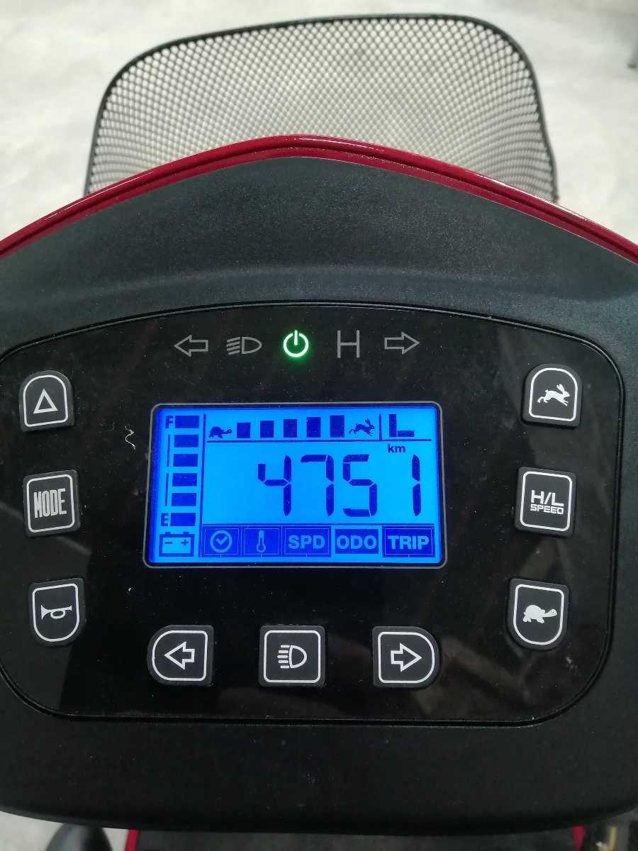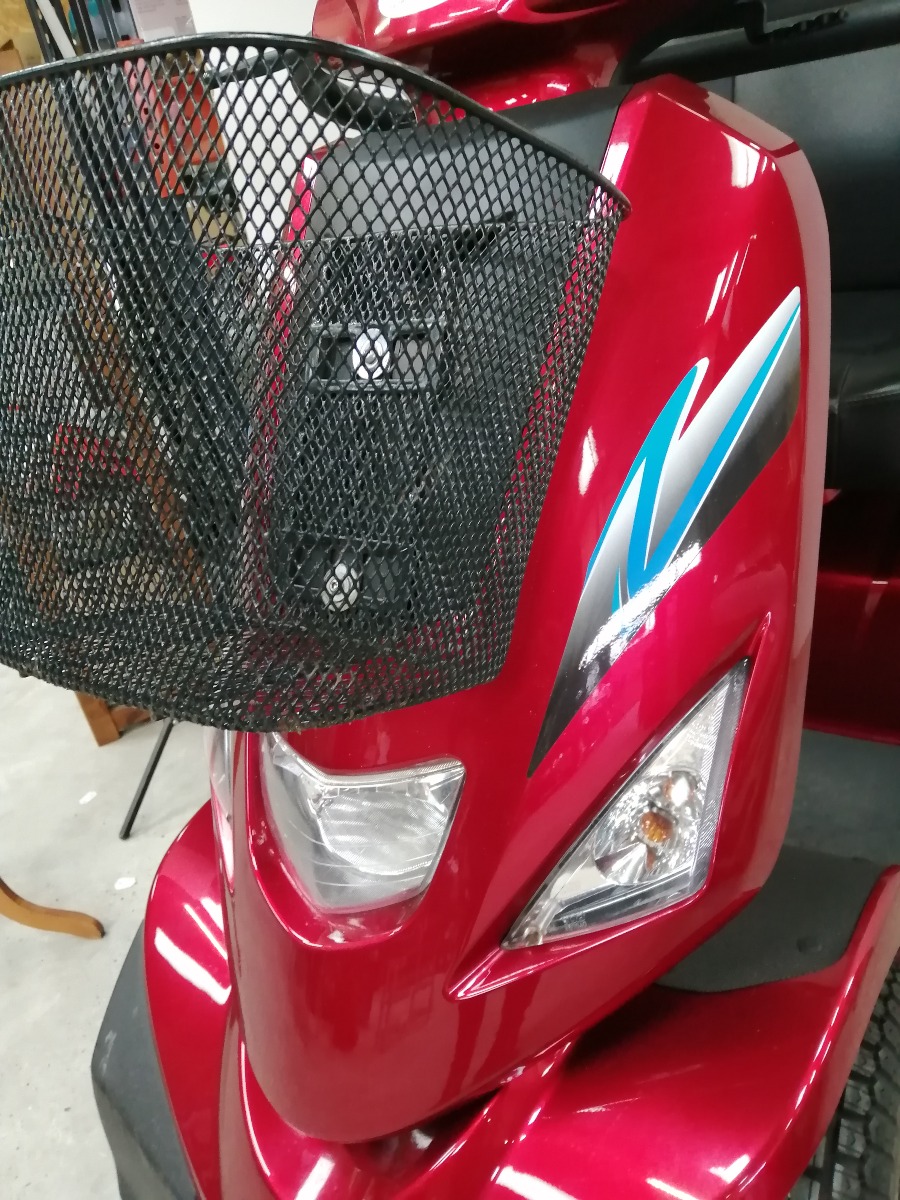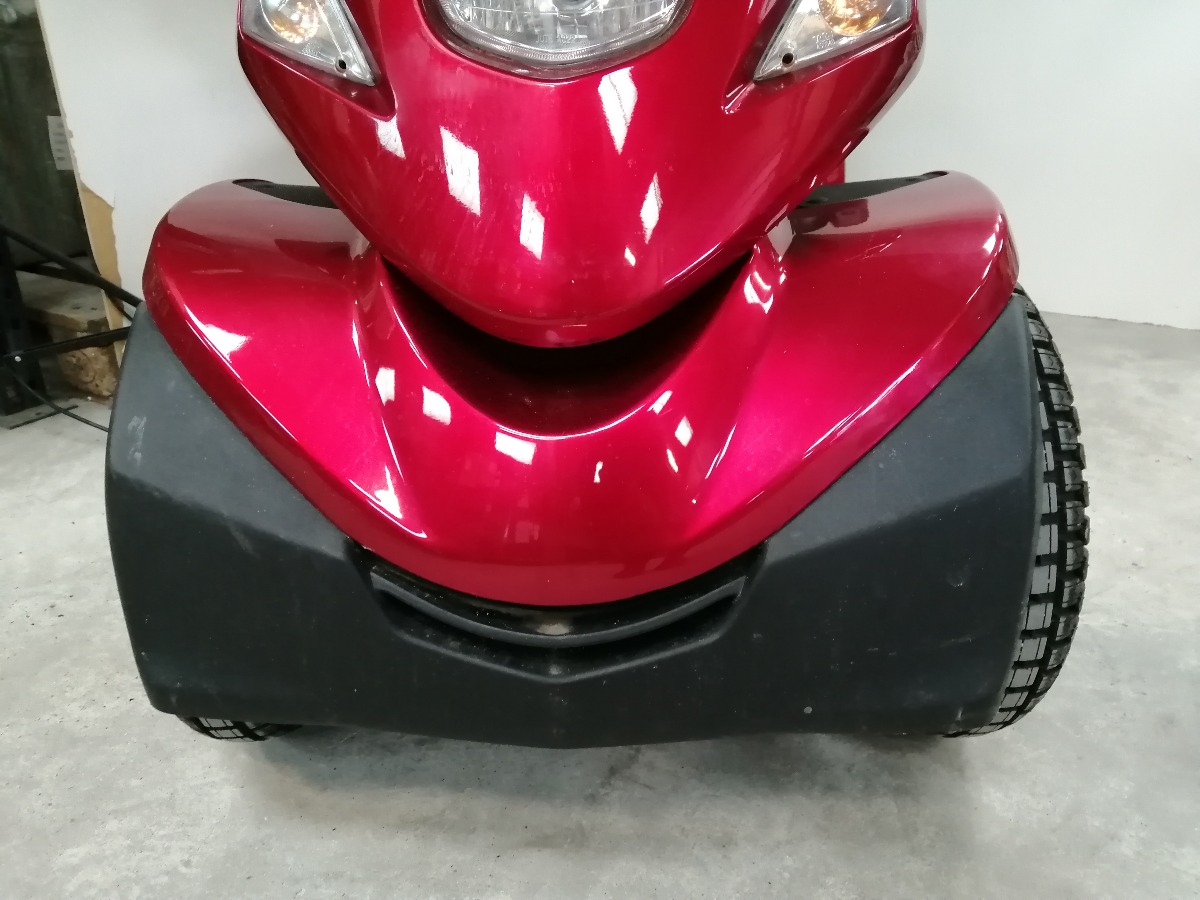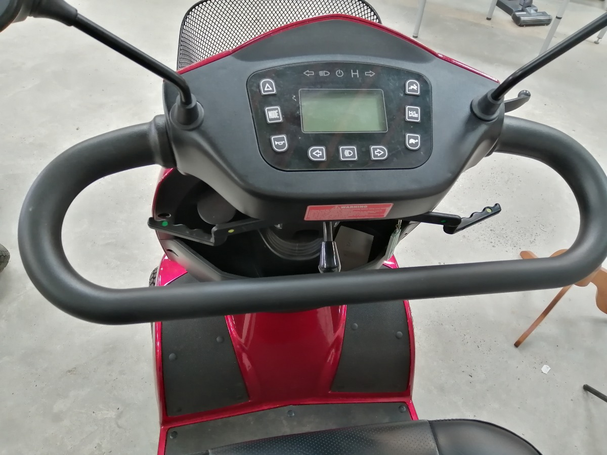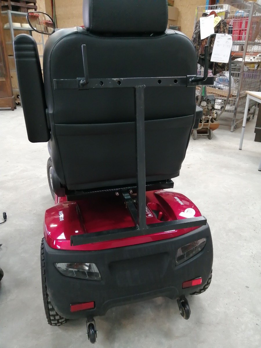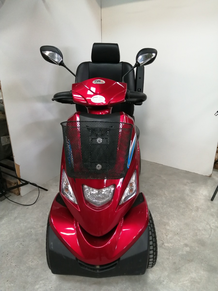Rød el-scooter, HS-928 maxi med kaptjan sæde, forkurv, 2 stk. spejle, 3 stk. nøgler, oplader, manual, samt 4 nye dæk. Den er 4 watt og med 100 AH batteri. Den er købt januar 2024 og har kørt 4.751 km. Brugt, men i meget pæn stand.
