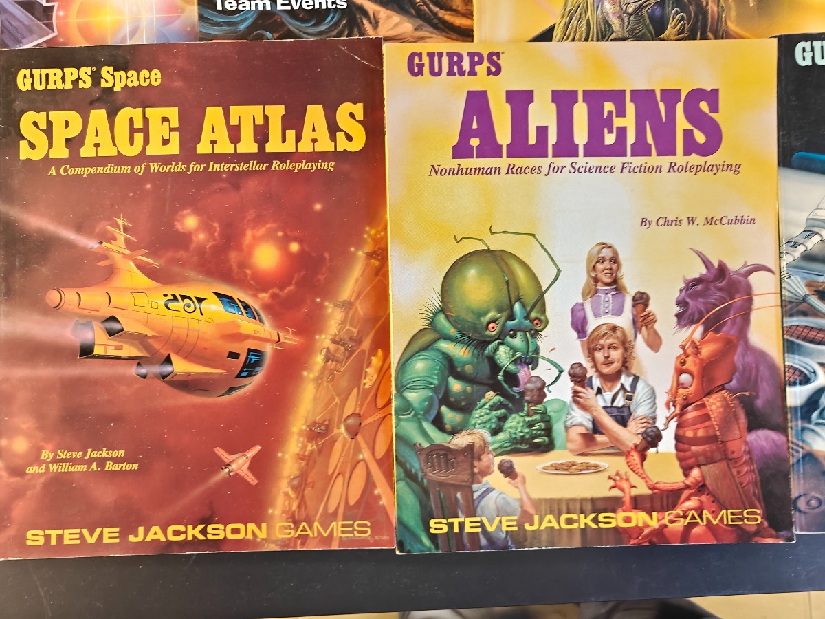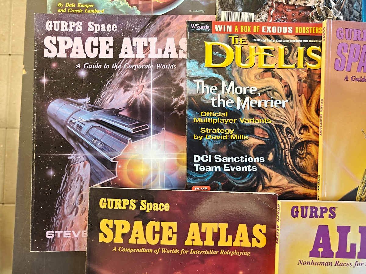 Samling af rollespilsbøger fra Steve Jackson Games til GURPS-systemet, herunder flere Space Atlas bind og andre science fiction-relaterede titler.