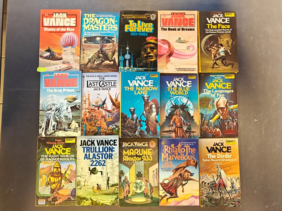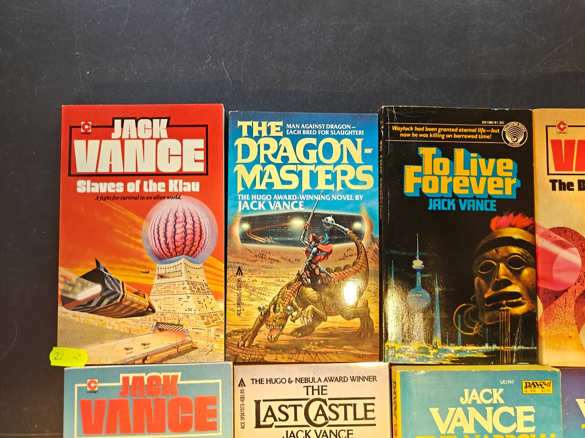 Enkeltstående romaner og novellesamlinger: Slaves of the Klau, The Dragon Masters, To Live Forever, The Gray Prince, The Last Castle, The Narrow Land, The Blue World, The Languages of Pao, The Many Worlds of Magnus Ridolph.
