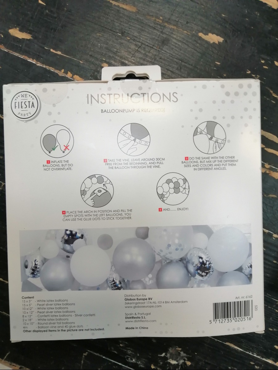 3 ballonkit til store buer i sølv og hvid. Varerne stammer fra lukket webshop. Alle varer er ubrugte og af rigtig god kvalitet.