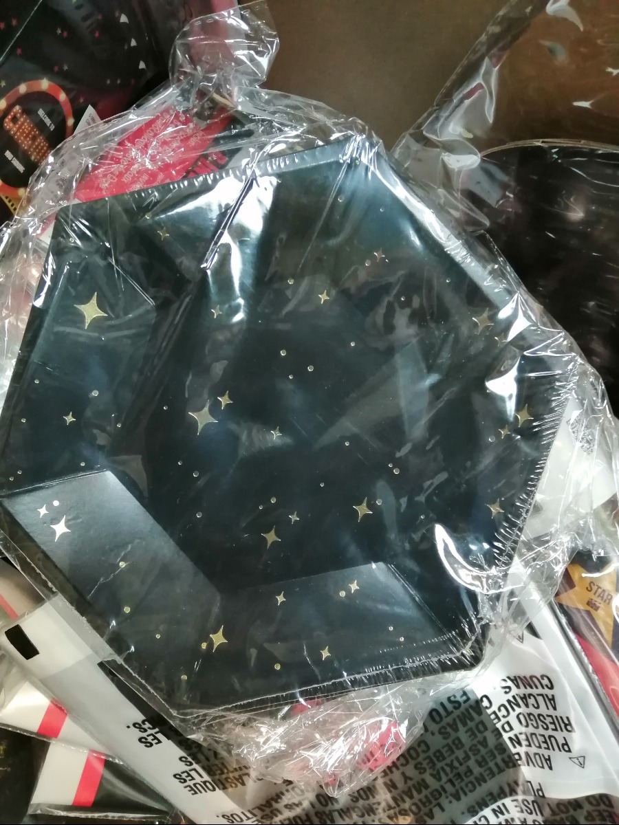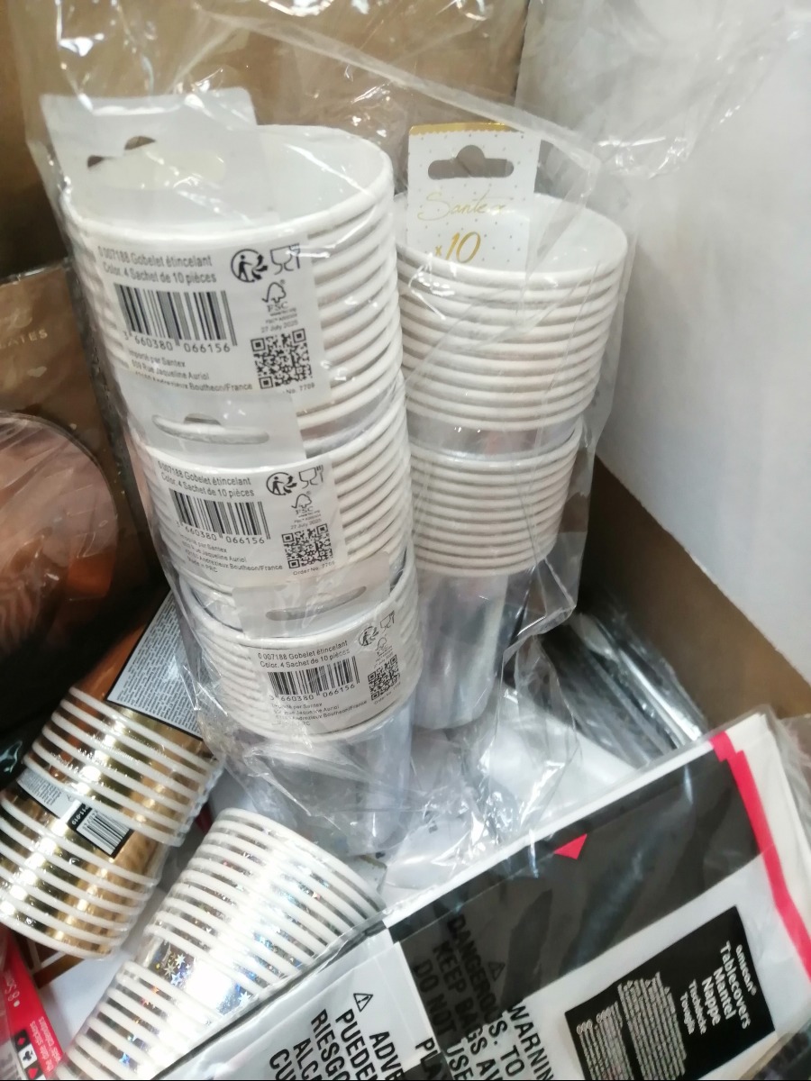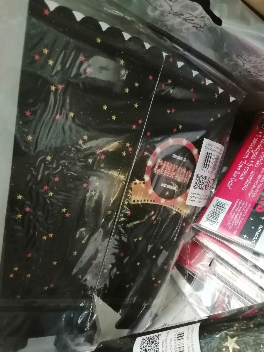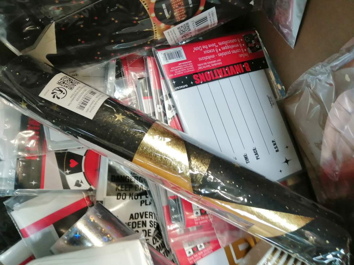 Fest artikler. Papkrus, servitter, popcorn kasser, invitationer, bordduge m.m. Varerne stammer fra lukket webshop. Alle varer er ubrugte og af rigtig god kvalitet.