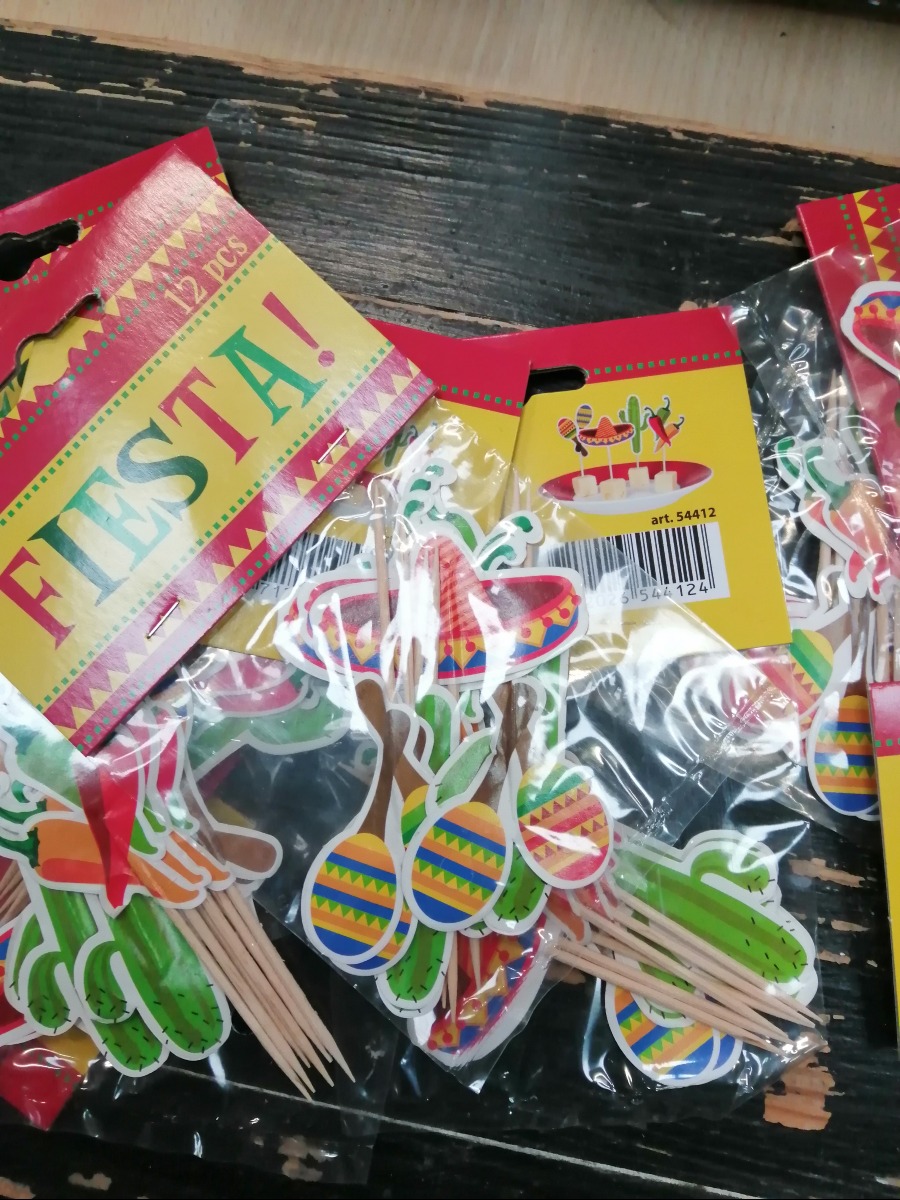 Festartikler til mexicansk tema. Hatte, paptallerkner, flag m.m. Varerne stammer fra lukket webshop. Alle varer er ubrugte og af rigtig god kvalitet.