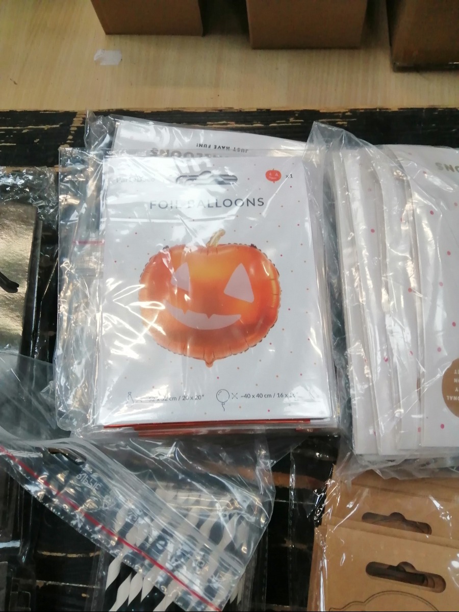Udklædning og pynt til halloween. Mange forskellige ting. Varerne stammer fra lukket webshop. Alle varer er ubrugte og af rigtig god kvalitet.