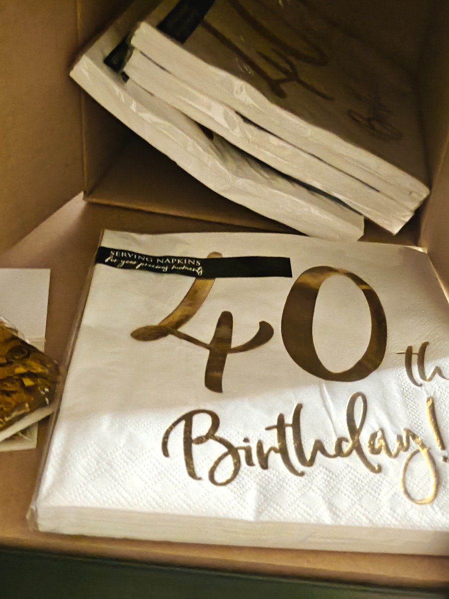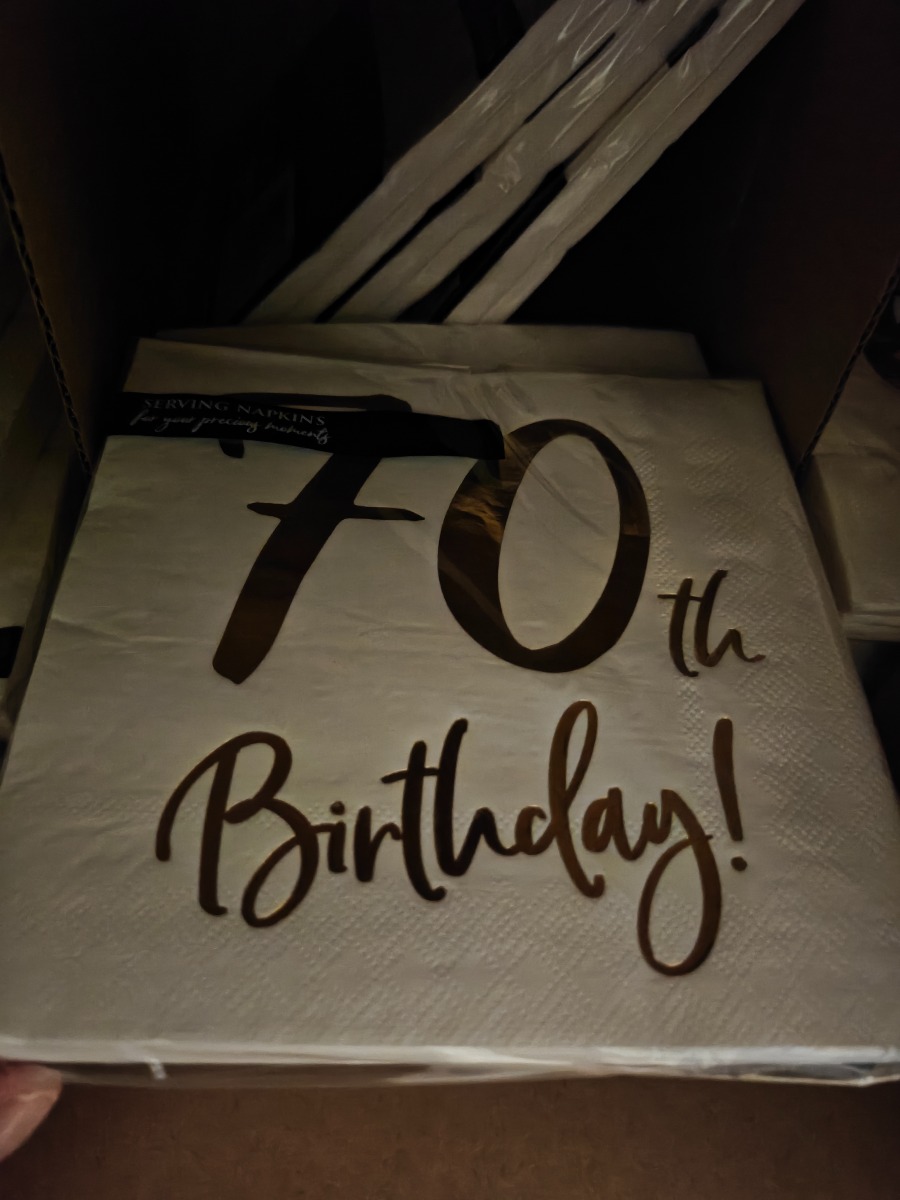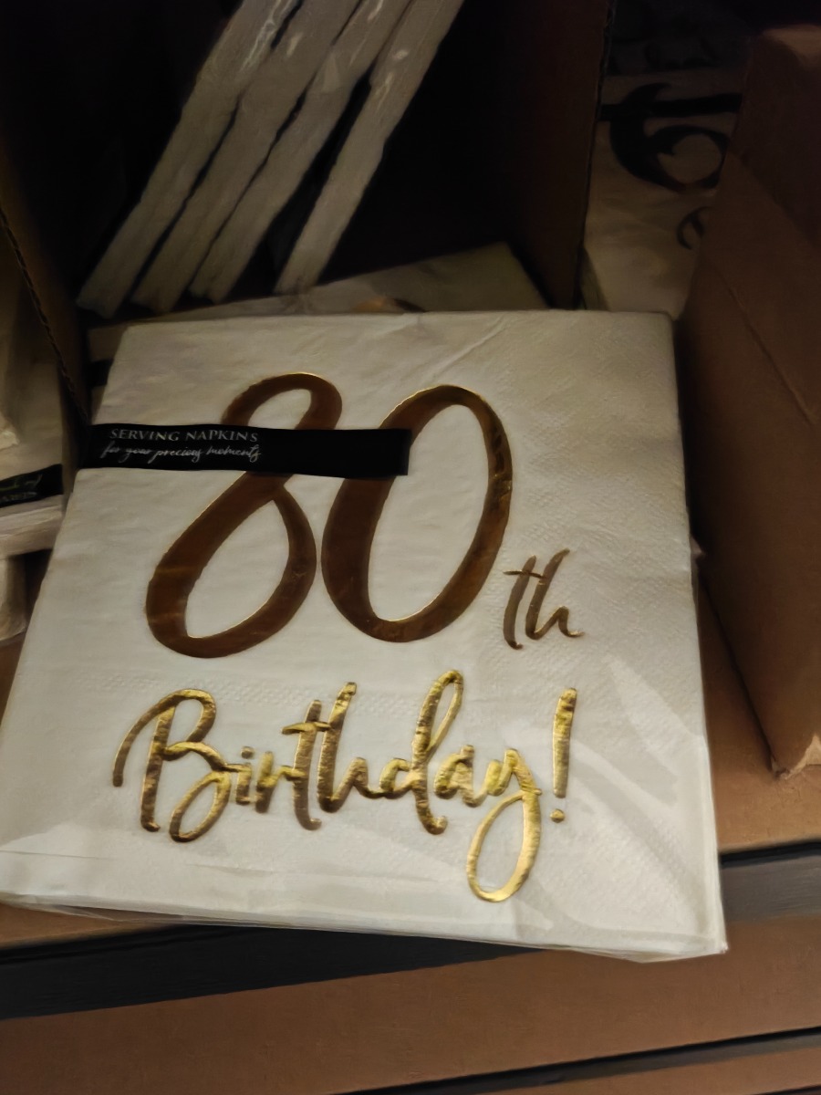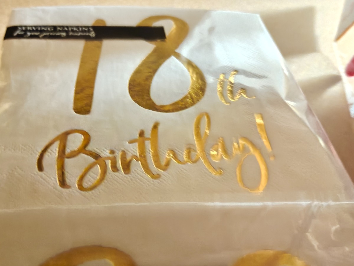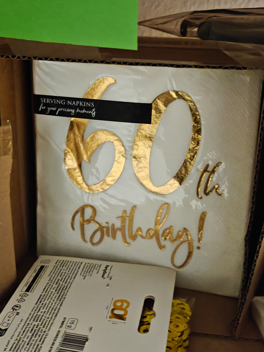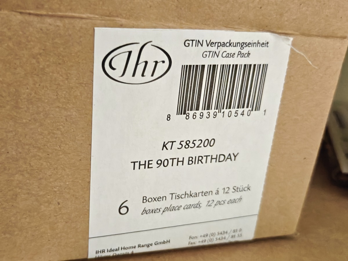 Hvide servietter til runde fødselsdage. Alt fra 18 til 90. Hertil enkelte andre ting med "runde" tal. Varerne stammer fra lukket webshop. Alle varer er ubrugte og af rigtig god kvalitet.