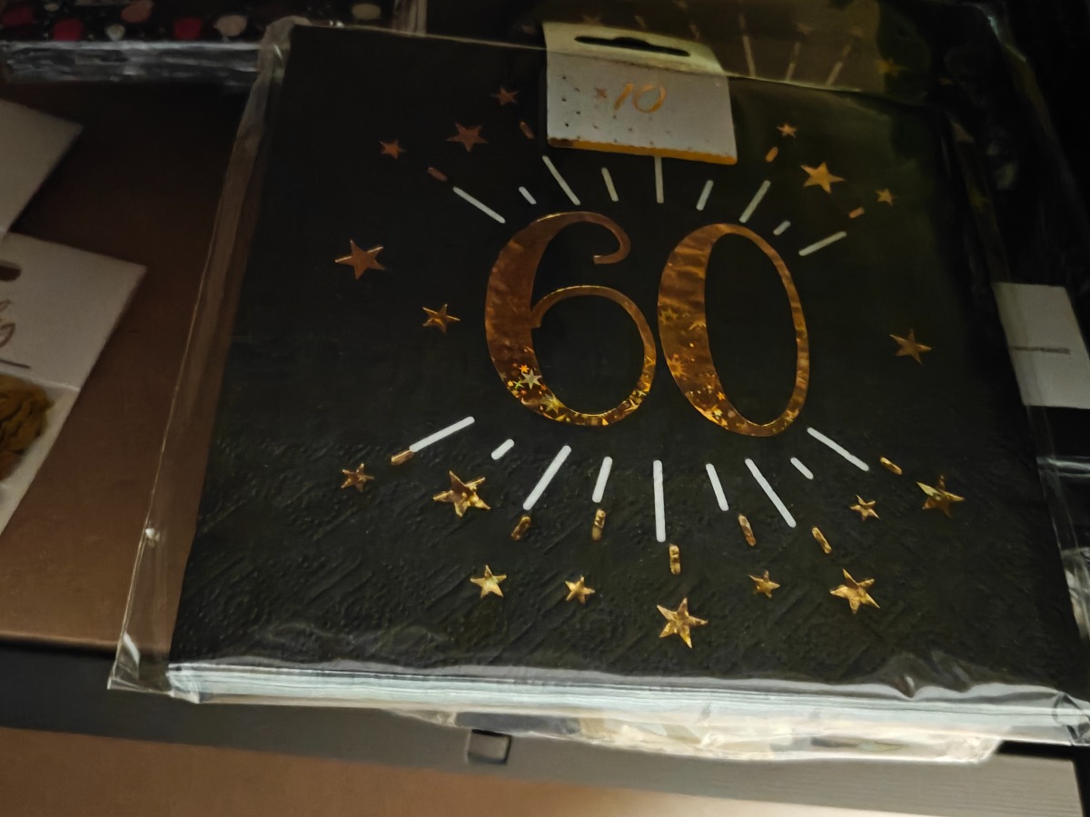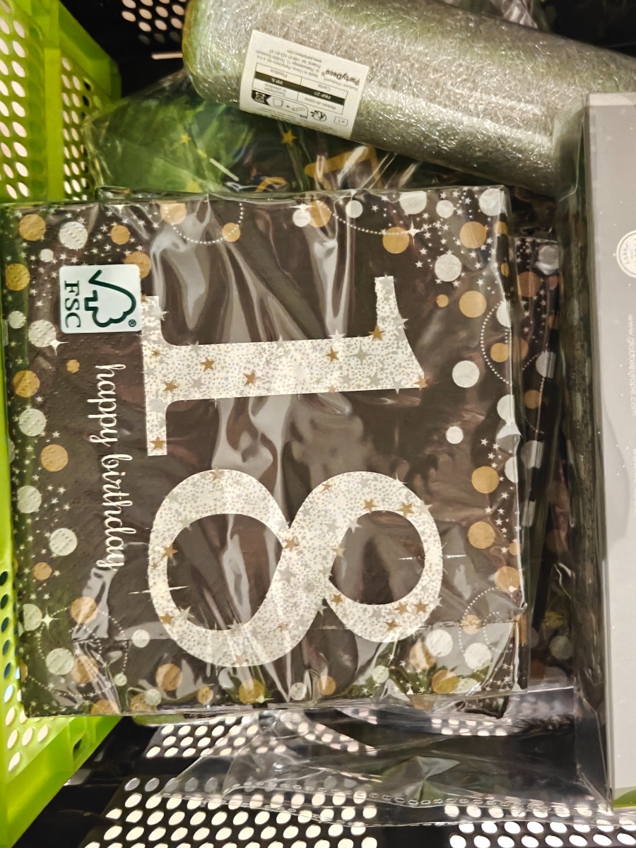 Sorte servietter til runde fødselsdage samt enkelte andre relaterede effekter. Varerne stammer fra lukket webshop. Alle varer er ubrugte og af rigtig god kvalitet.