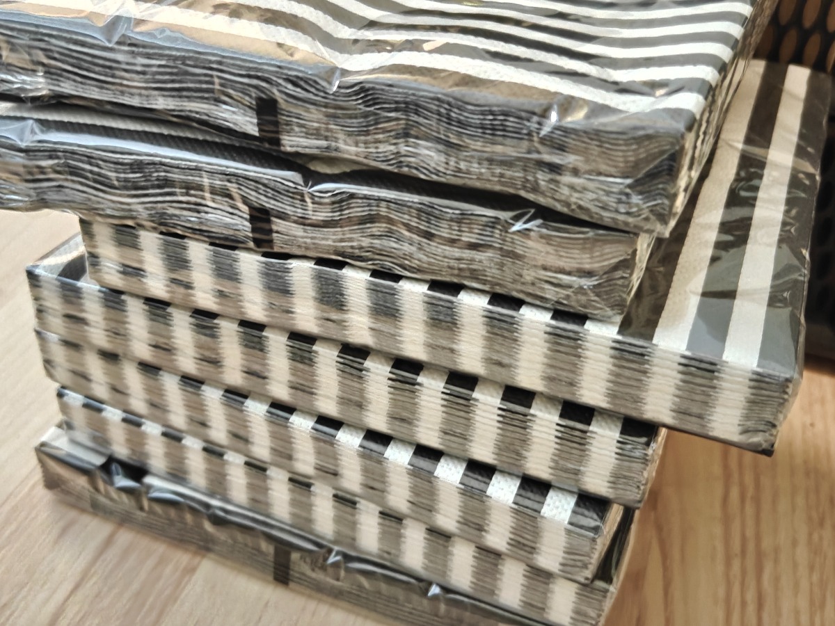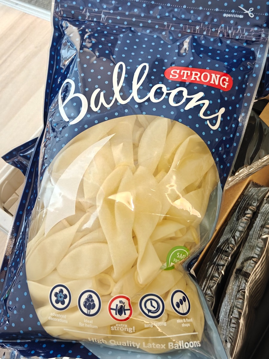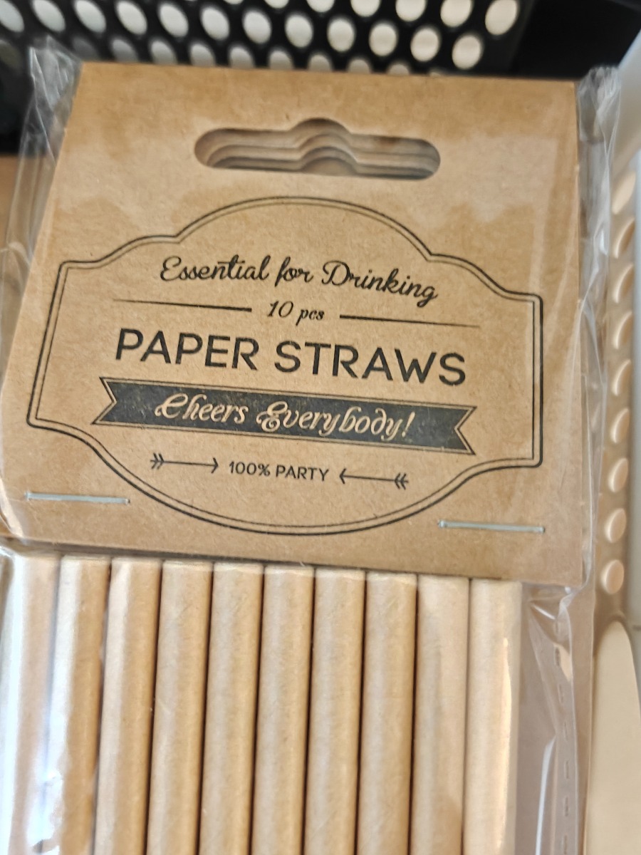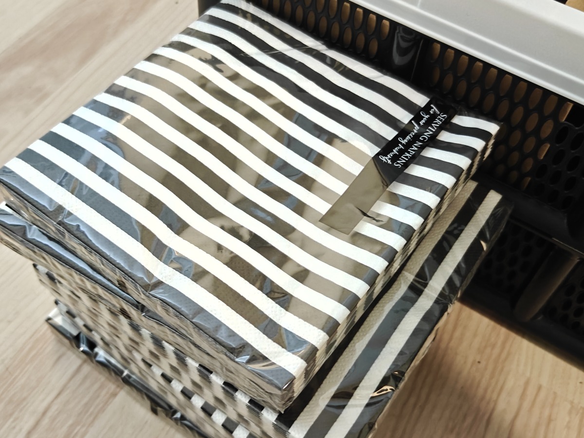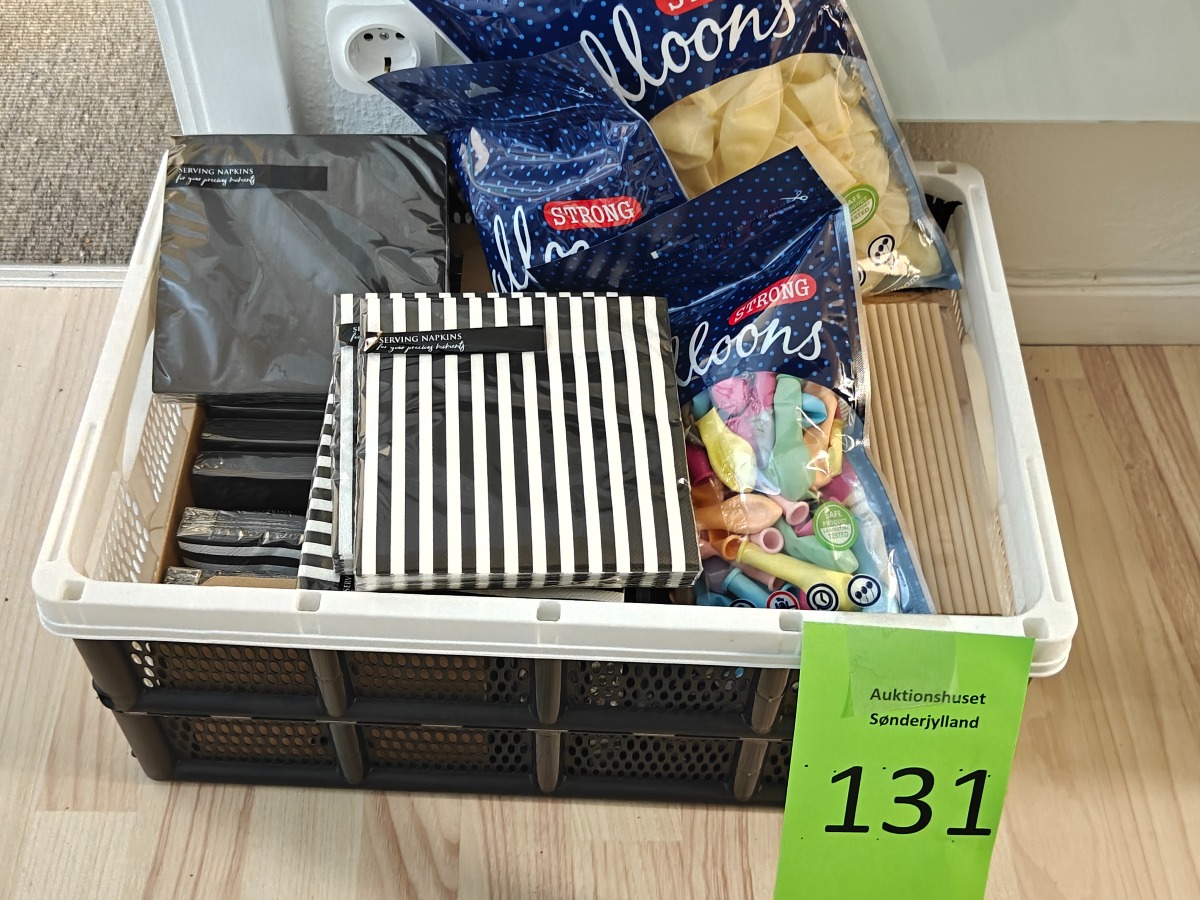 Sorte servietter i 2 modeller. Poser med latex-balonner, større antal sugerør af papir. Varerne stammer fra lukket webshop. Alle varer er ubrugte og af rigtig god kvalitet.