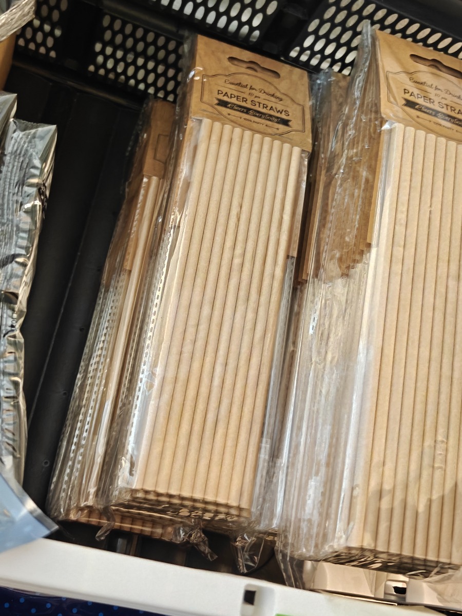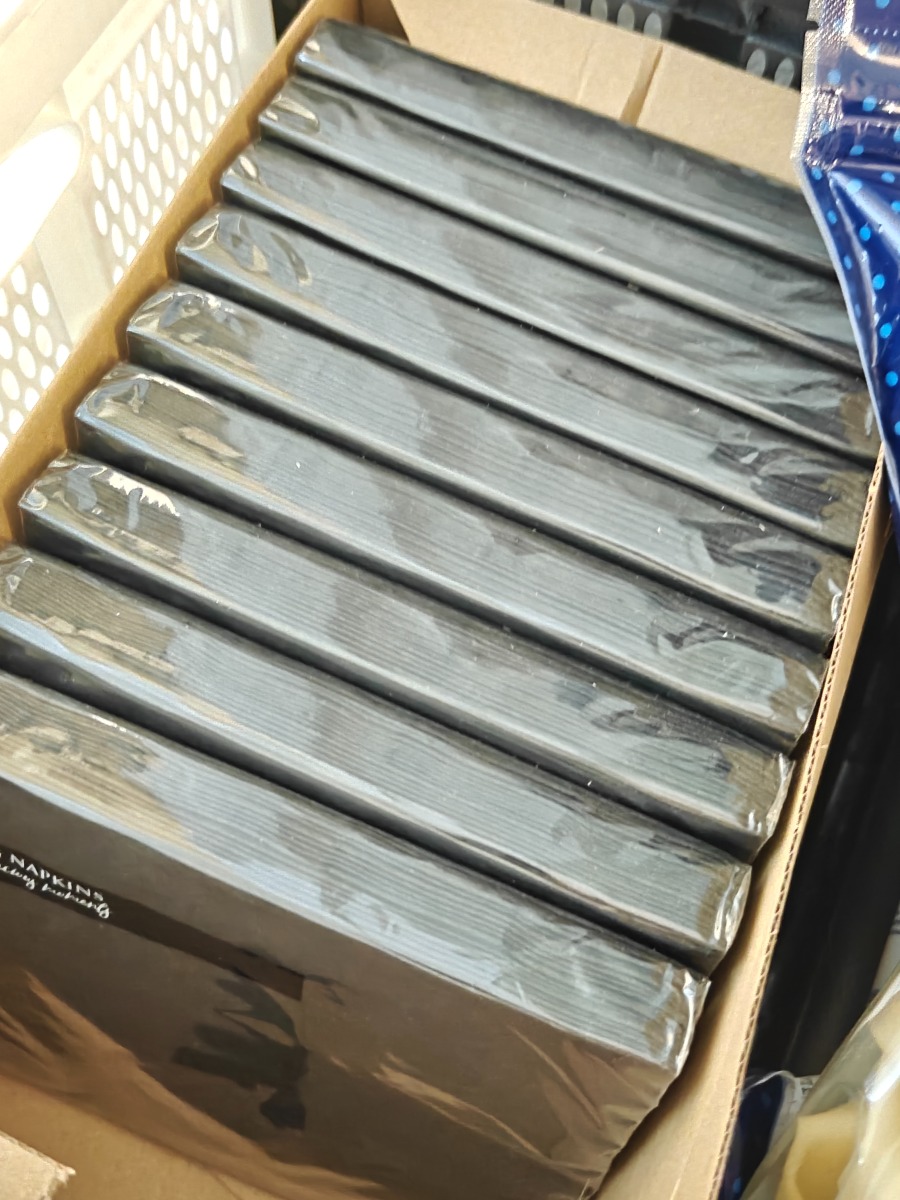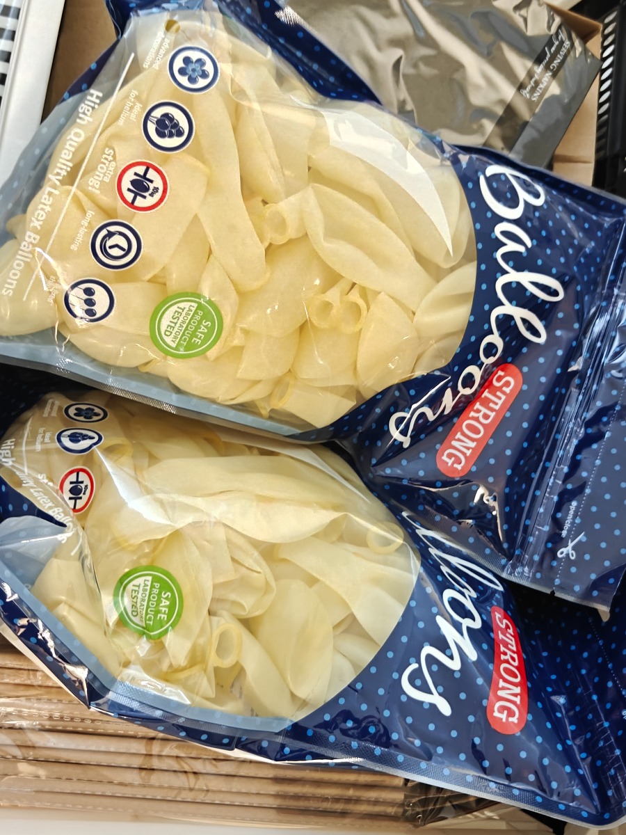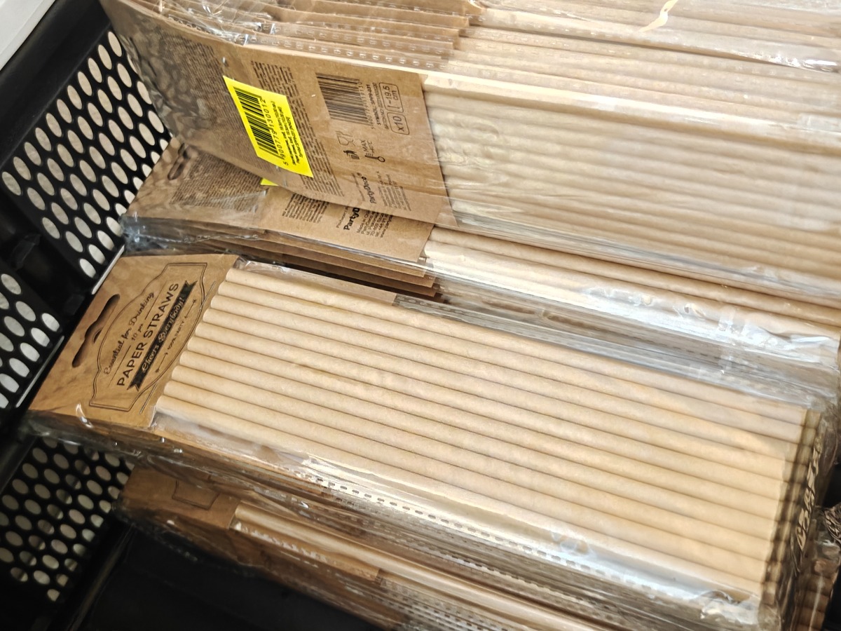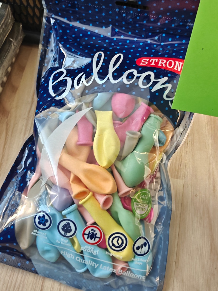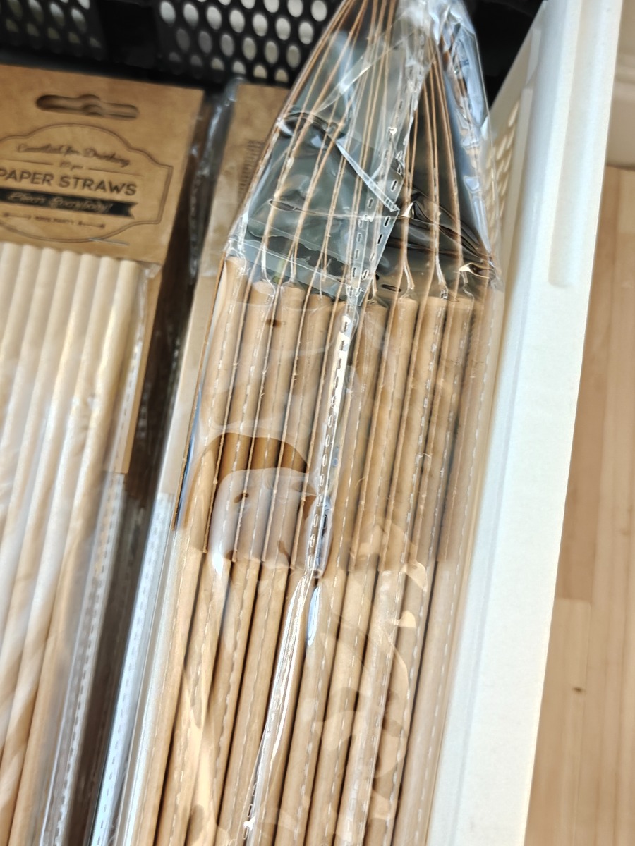 Sorte servietter i 2 modeller. Poser med latex-balonner, større antal sugerør af papir. Varerne stammer fra lukket webshop. Alle varer er ubrugte og af rigtig god kvalitet.