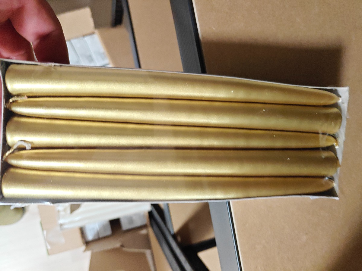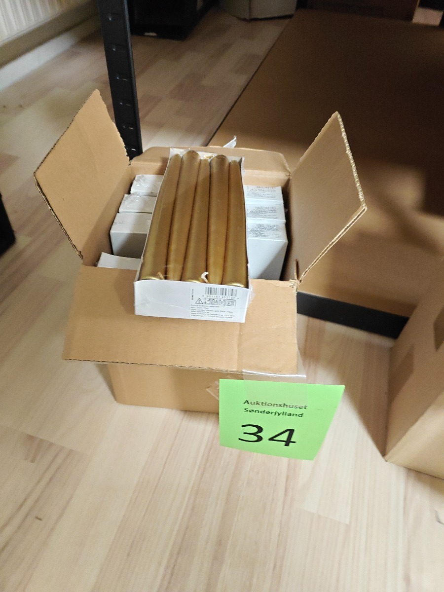 Kertelys med guld. 8 pk. a 10 stk. 24 cm. Varerne stammer fra lukket webshop. Alle varer er ubrugte og af rigtig god kvalitet.