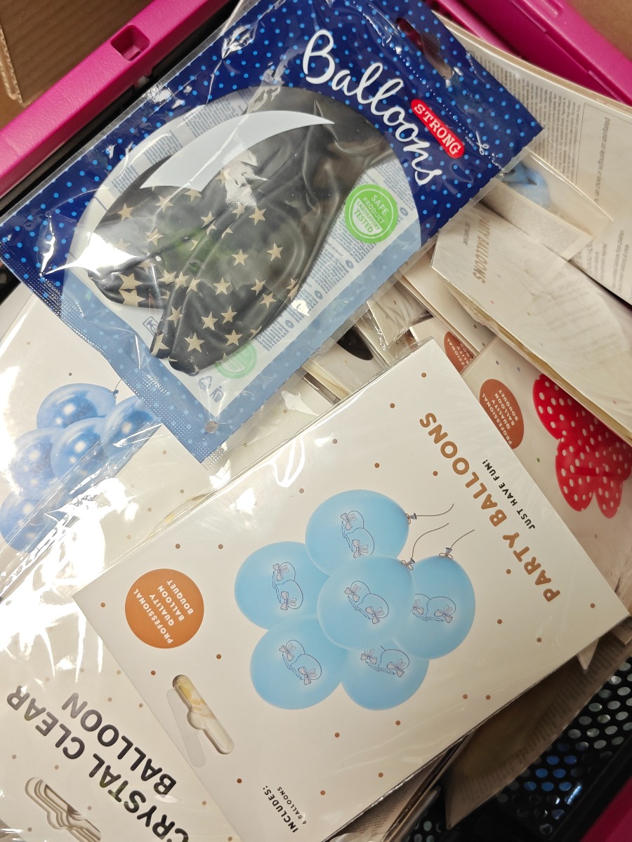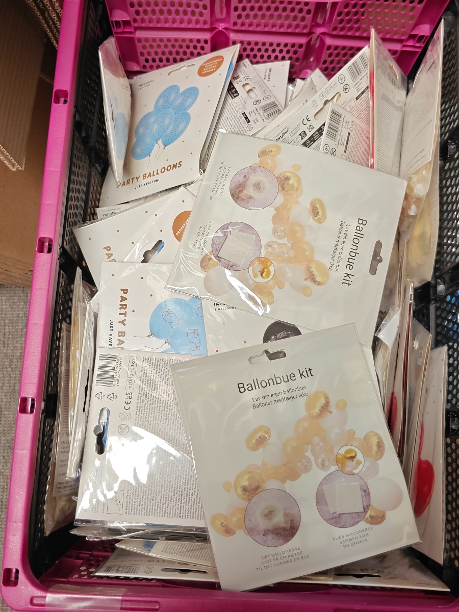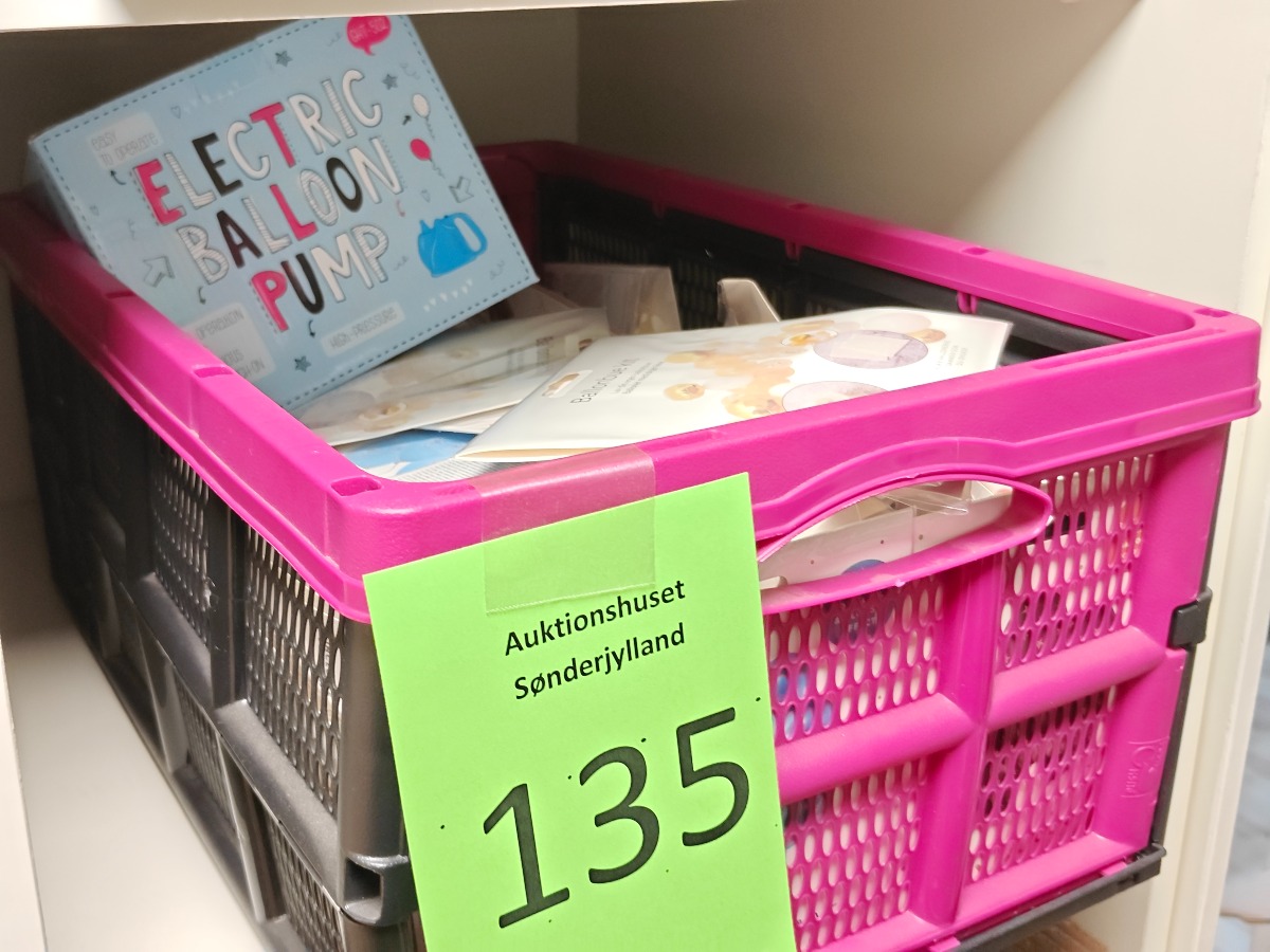 Elektrisk ballonpumpe og større antal specielle balloner. Varerne stammer fra lukket webshop. Alle varer er ubrugte og af rigtig god kvalitet.