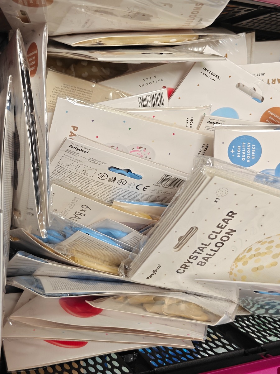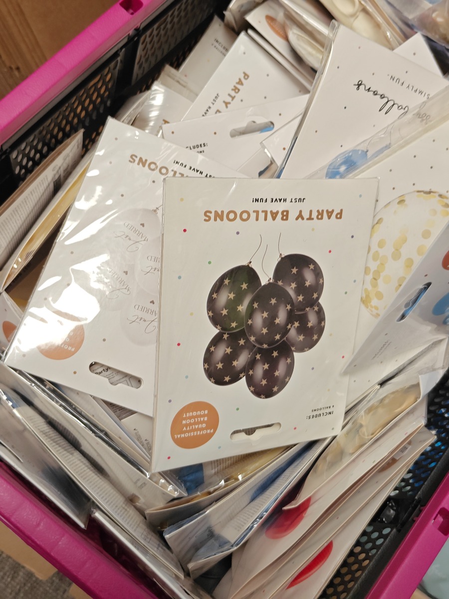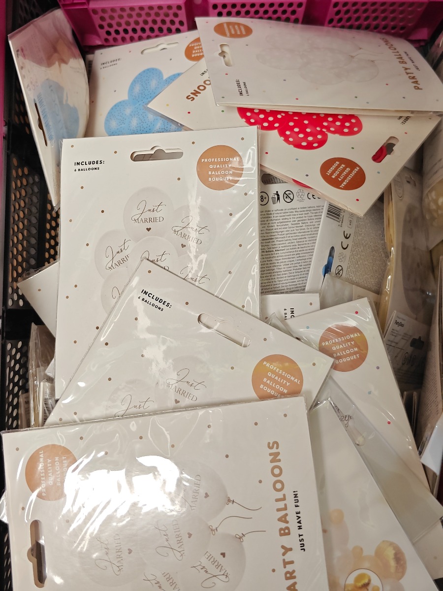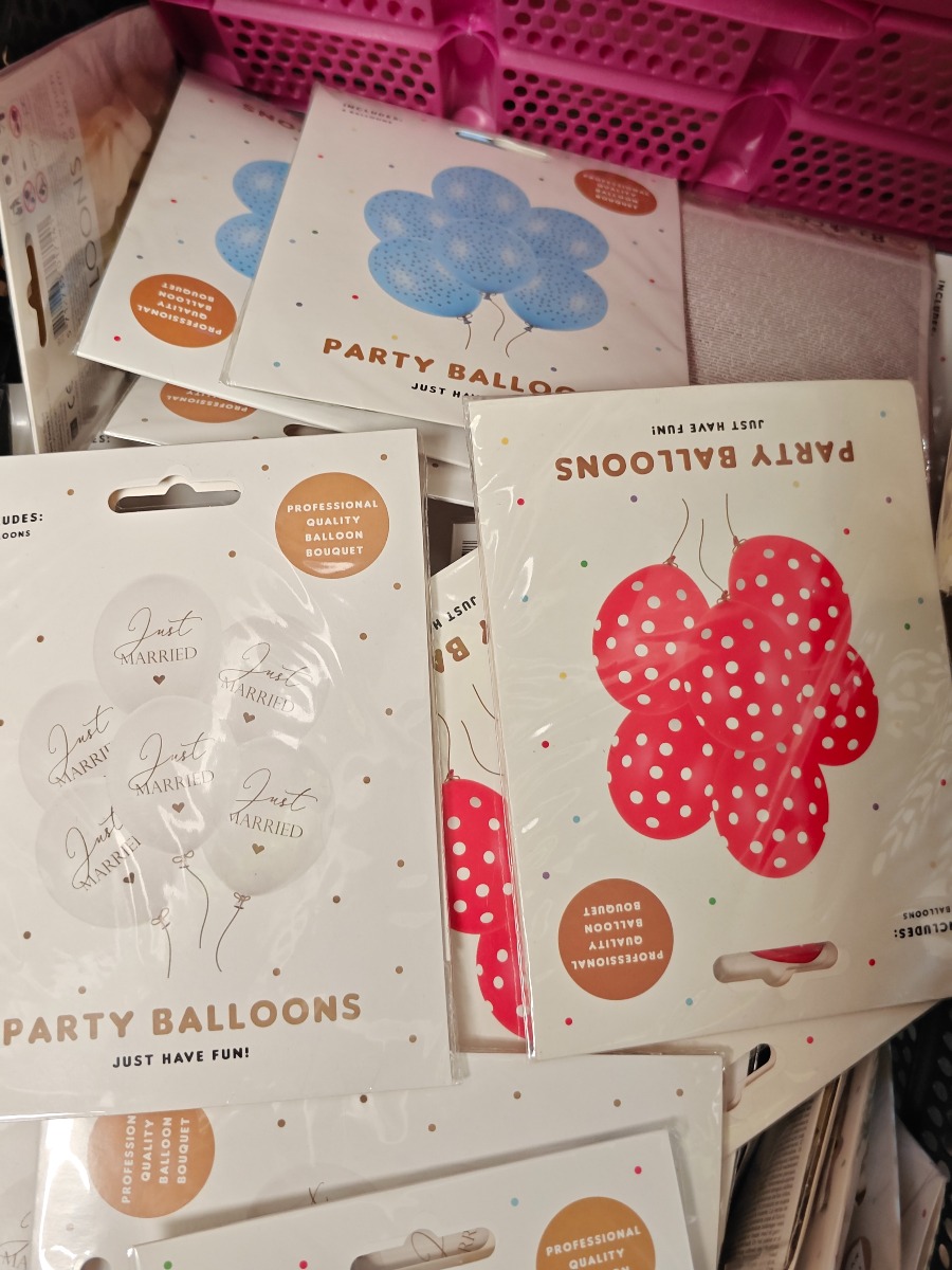 Elektrisk ballonpumpe og større antal specielle balloner. Varerne stammer fra lukket webshop. Alle varer er ubrugte og af rigtig god kvalitet.
