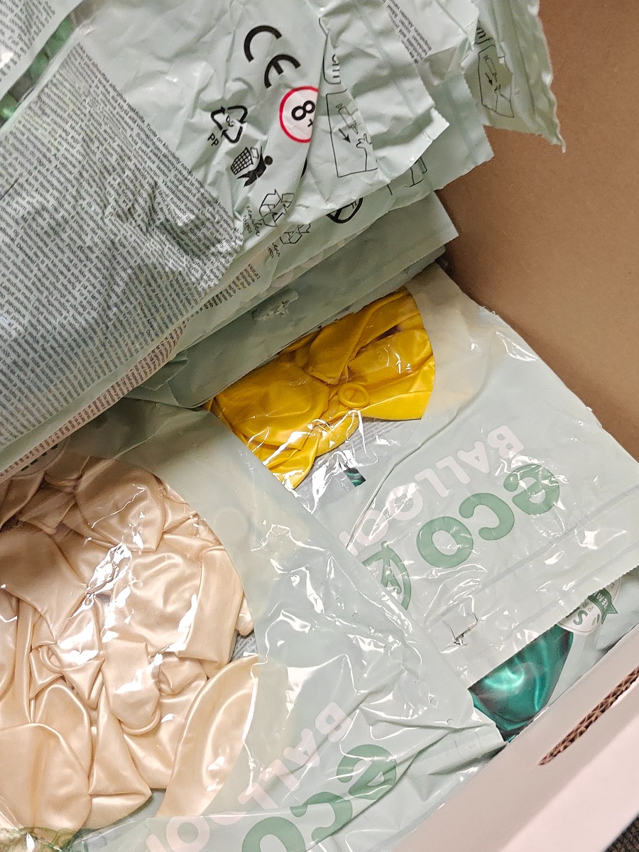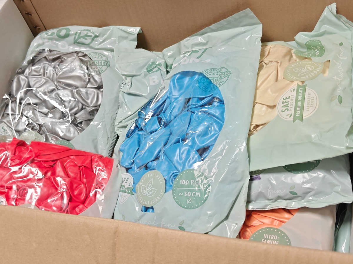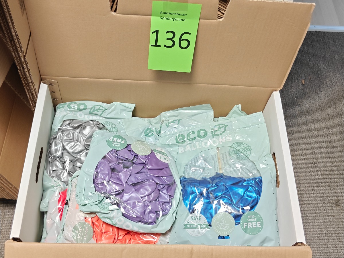 Større parti økologiske balloner. Mere info på billeder. Varerne stammer fra lukket webshop. Alle varer er ubrugte og af rigtig god kvalitet.