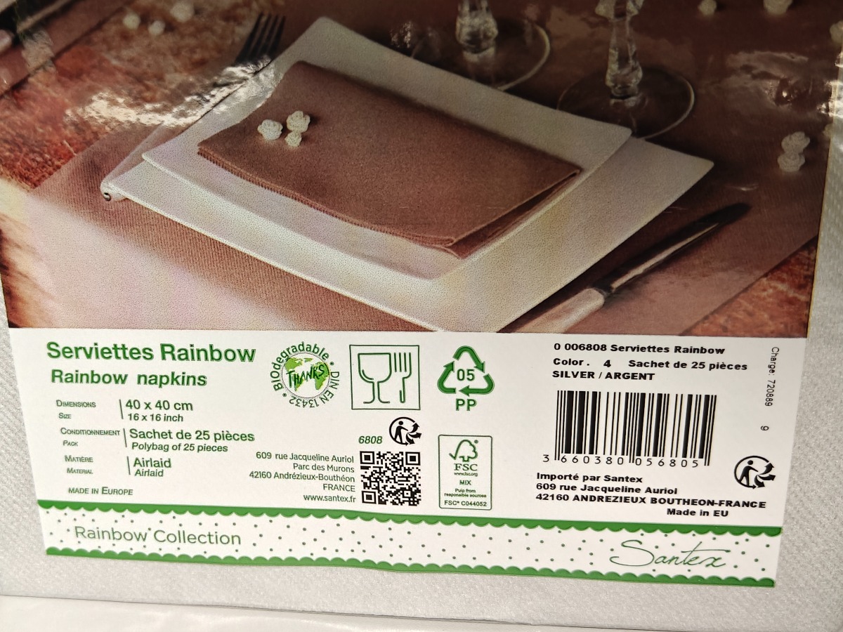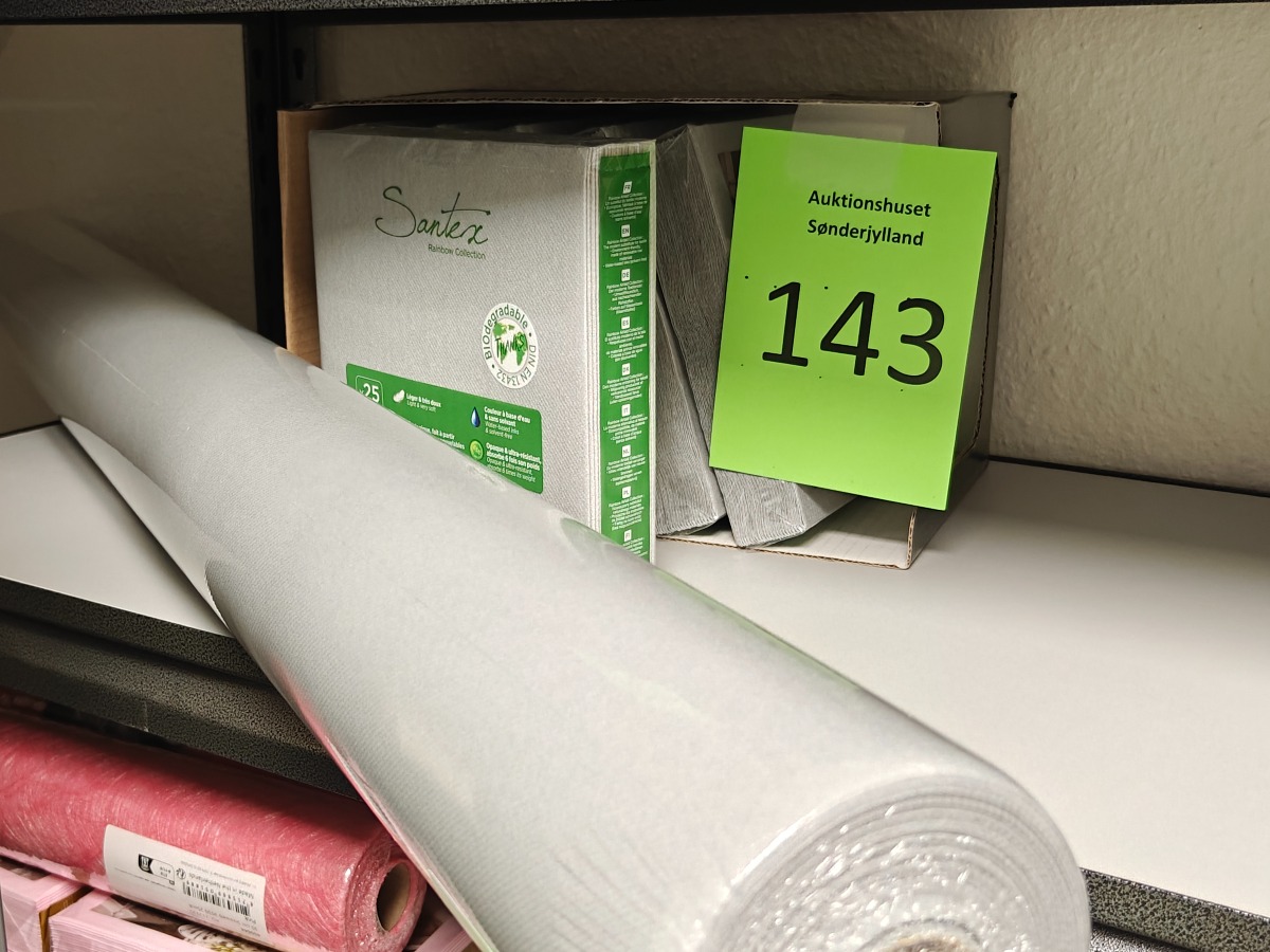 Tekstilservietter og dug med sølvtema. Dug 25m. Varerne stammer fra lukket webshop. Alle varer er ubrugte og af rigtig god kvalitet.