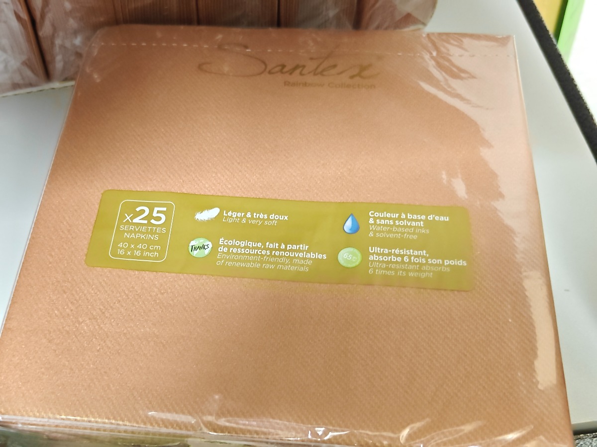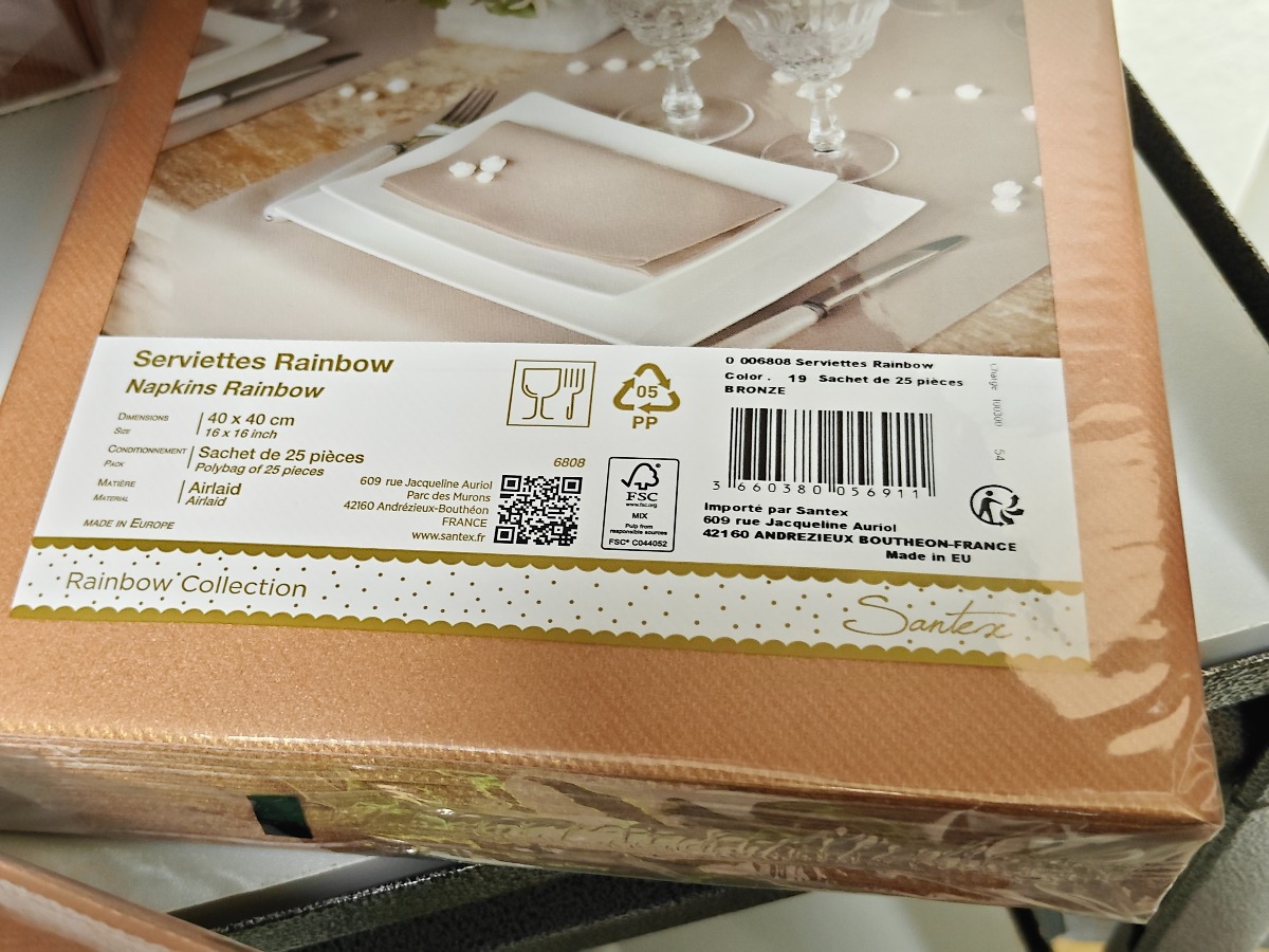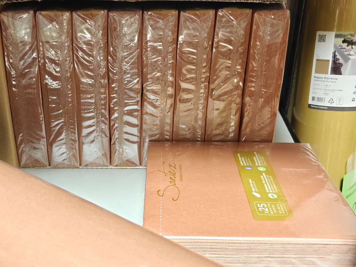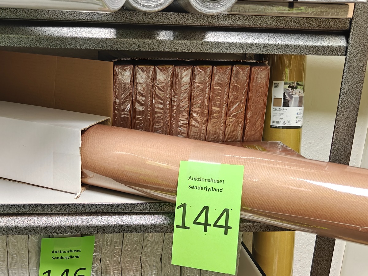 Bronzefarvet tekstildug samt servietter. 25m. dug samt 200 servietter. Varerne stammer fra lukket webshop. Alle varer er ubrugte og af rigtig god kvalitet.
