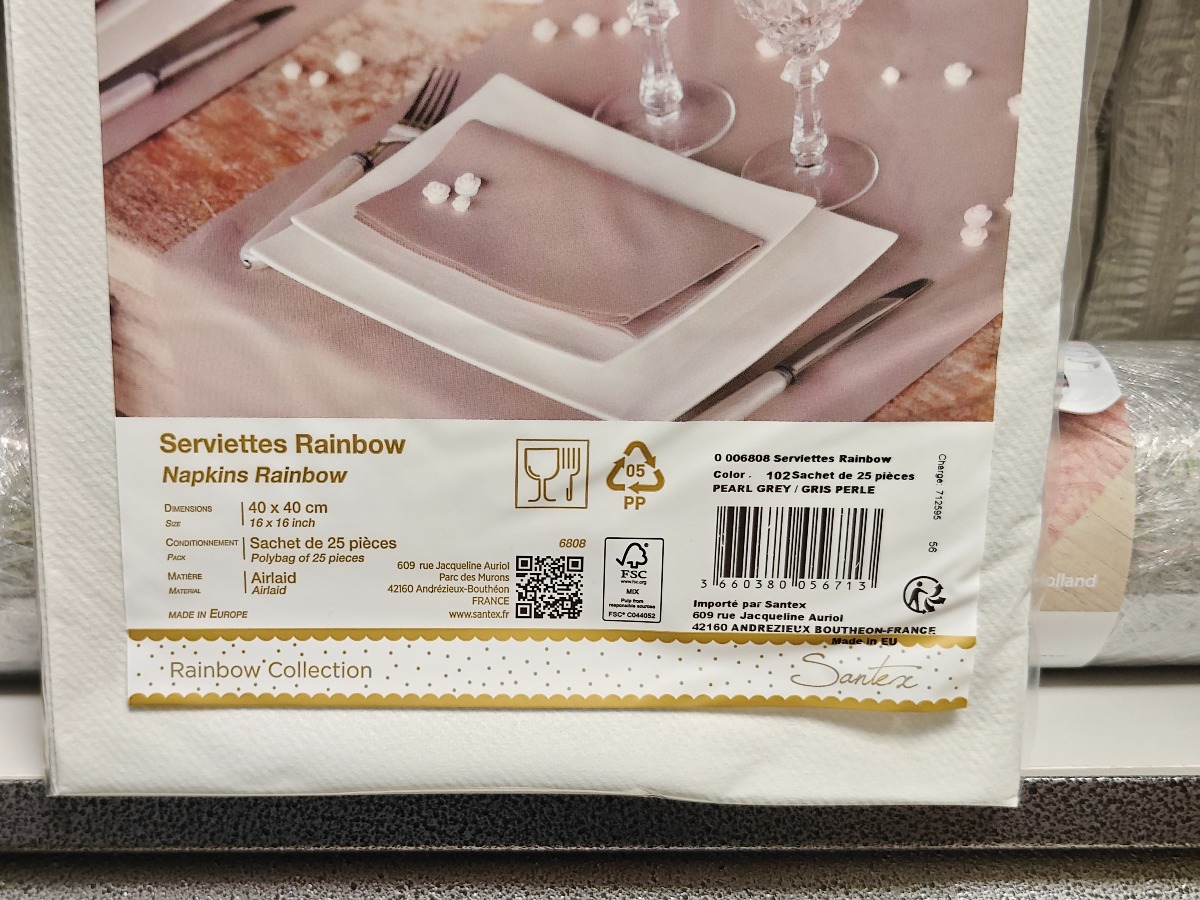 400 tekstilservietter og 2 ruller bordløbere. Varerne stammer fra lukket webshop. Alle varer er ubrugte og af rigtig god kvalitet.