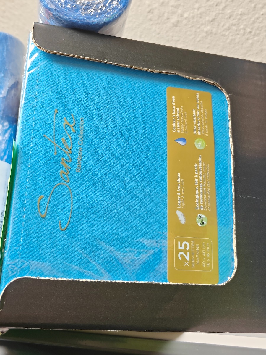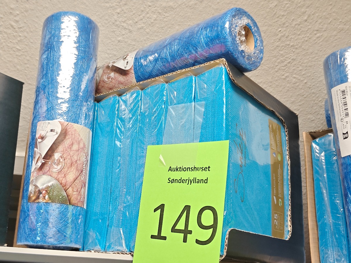 Blå servietter og bordløbere. Varerne stammer fra lukket webshop. Alle varer er ubrugte og af rigtig god kvalitet.