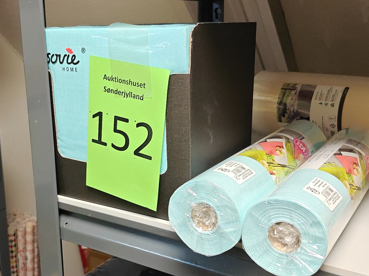 Lyseblå servietter og bordløbere. Varerne stammer fra lukket webshop. Alle varer er ubrugte og af rigtig god kvalitet.