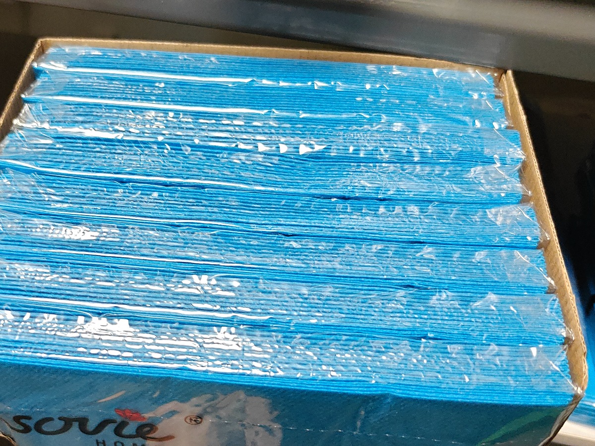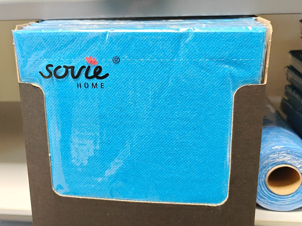 Havblå servietter og bordløber. Varerne stammer fra lukket webshop. Alle varer er ubrugte og af rigtig god kvalitet.