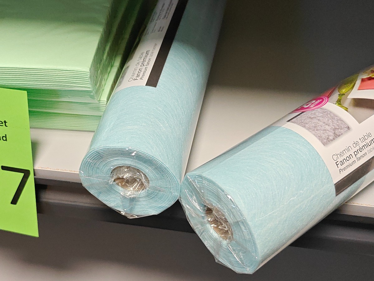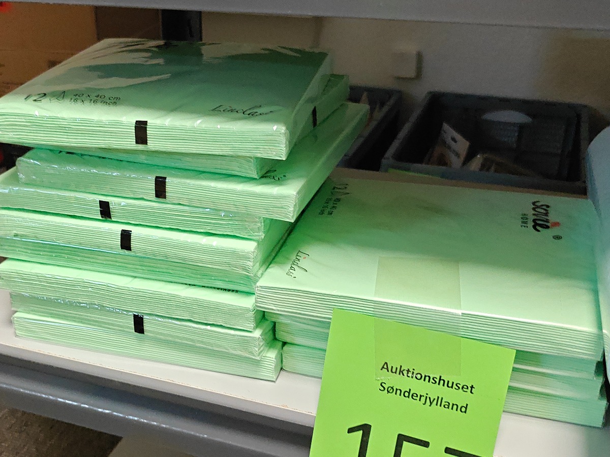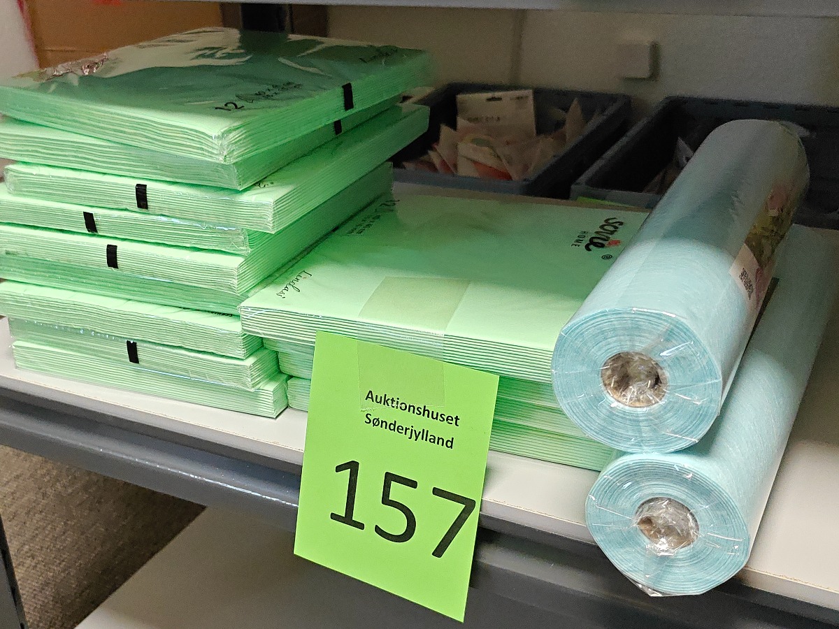 Servietter i lys grøn samt lyseblå bordløbere. Varerne stammer fra lukket webshop. Alle varer er ubrugte og af rigtig god kvalitet.