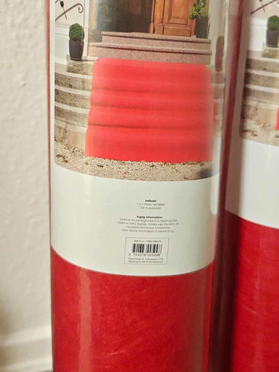 2 røde løbere på 3 x 1 m. Varerne stammer fra lukket webshop. Alle varer er ubrugte og af rigtig god kvalitet.
