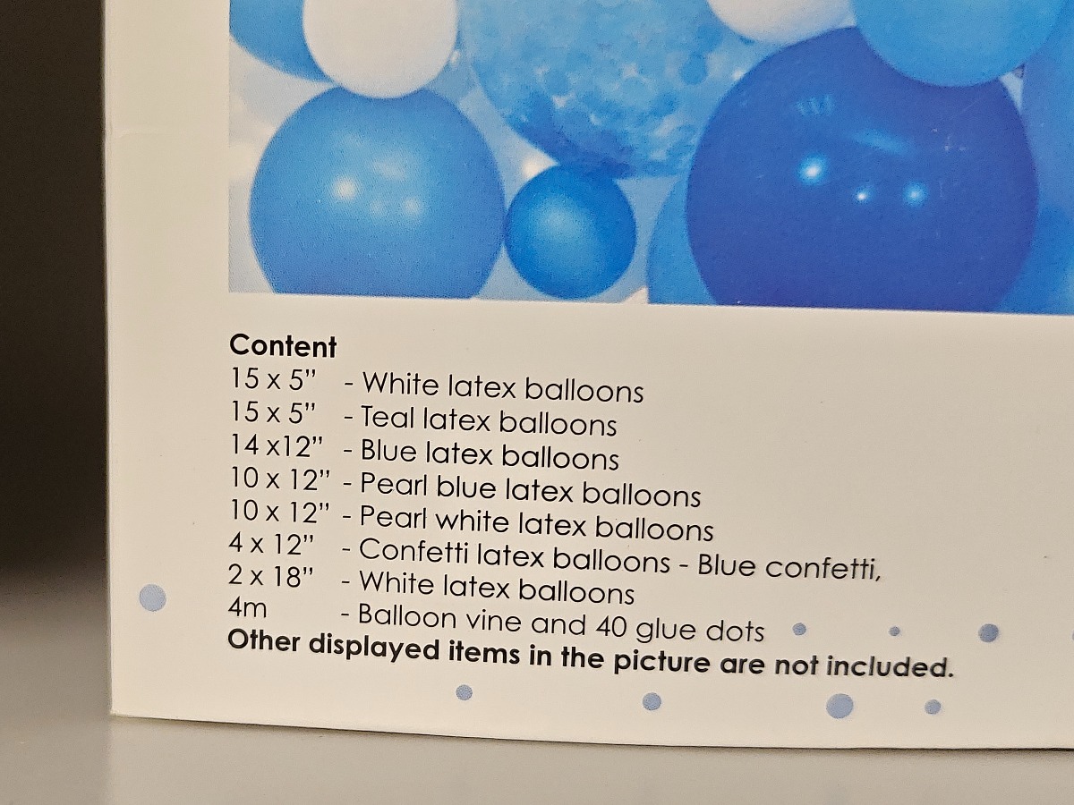 2 kit til ballonguirlander i blå farver. Varerne stammer fra lukket webshop. Alle varer er ubrugte og af rigtig god kvalitet.