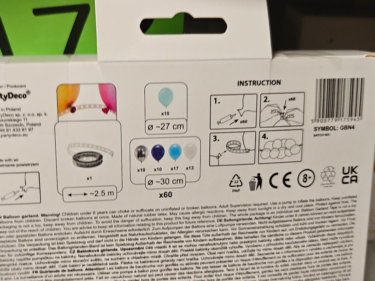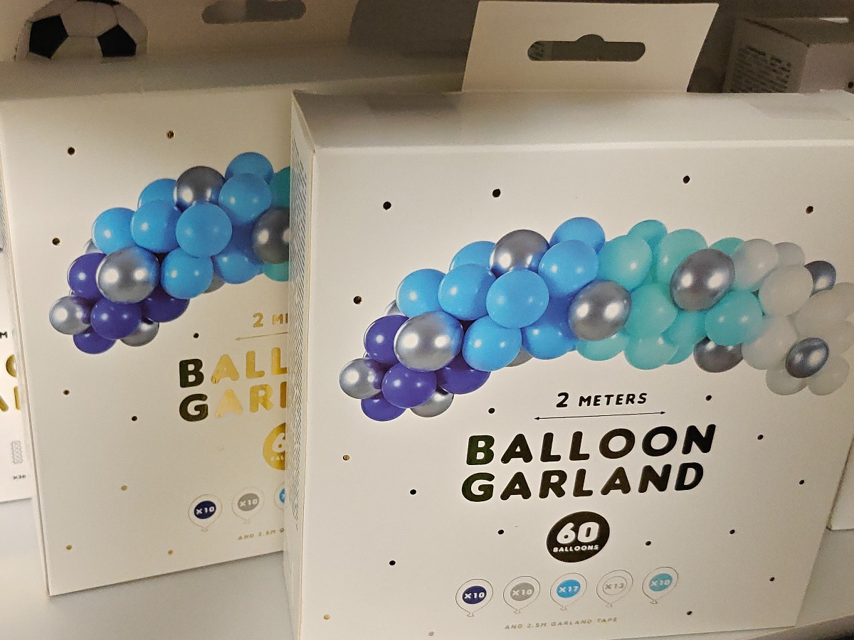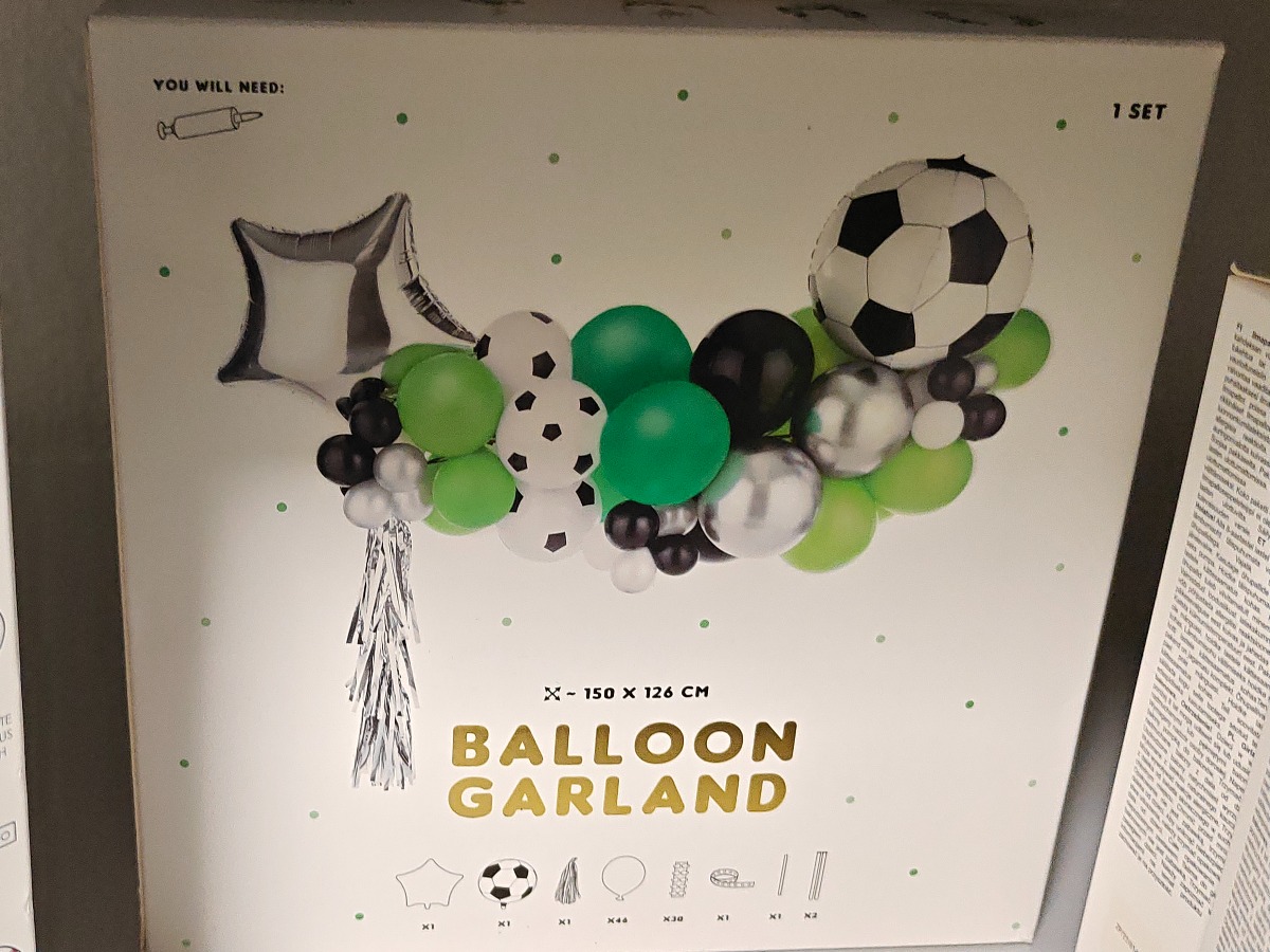 3 ballonguirlander: blå og fodboldtema. Varerne stammer fra lukket webshop. Alle varer er ubrugte og af rigtig god kvalitet.