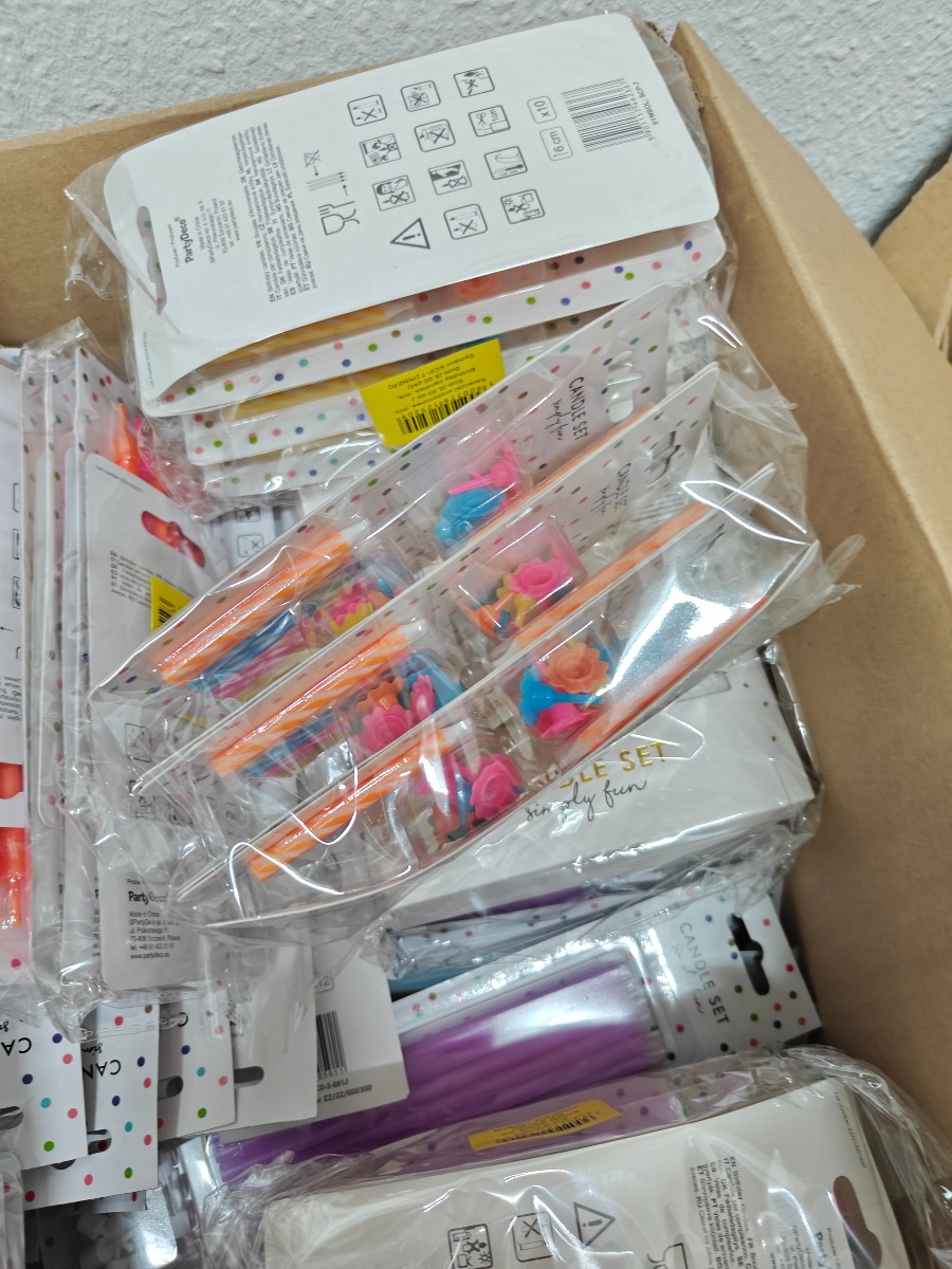 Parti fødselsdagslys. Mange udgaver størrelser og farver. Varerne stammer fra lukket webshop. Alle varer er ubrugte og af rigtig god kvalitet.