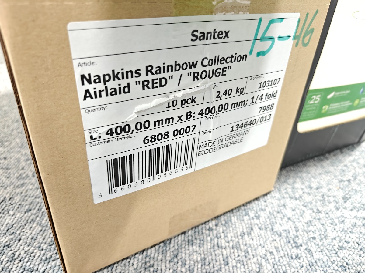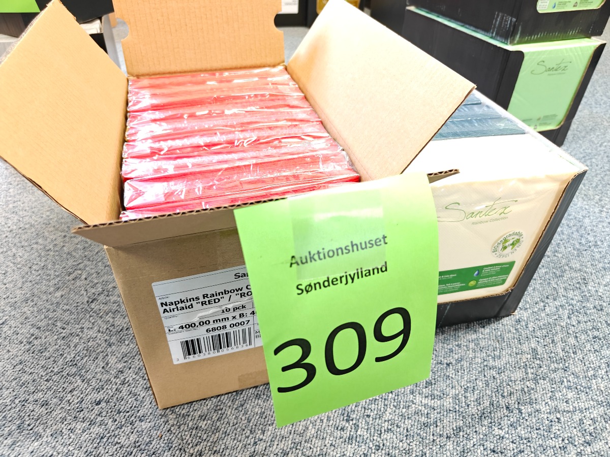 Servietter rød, grøn og creme (16). Santex servietter, 40 x 40 cm. Vejledende udsalgspris 49,95,-/pk. Varerne stammer fra lukket webshop. Alle varer er ubrugte og af rigtig god kvalitet.