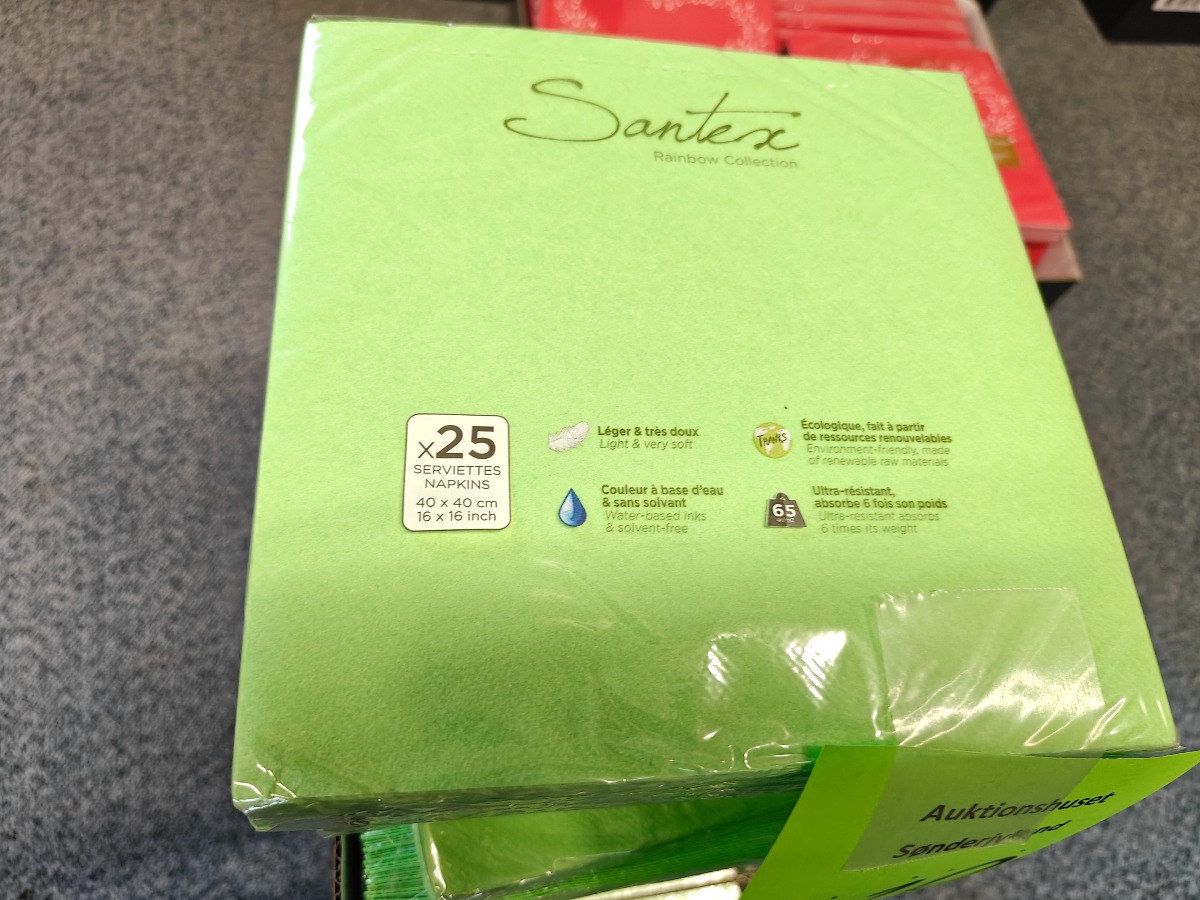 Servietter limegrøn (19). Santex servietter, 40 x 40 cm. Vejledende udsalgspris 49,95,-/pk. Varerne stammer fra lukket webshop. Alle varer er ubrugte og af rigtig god kvalitet.