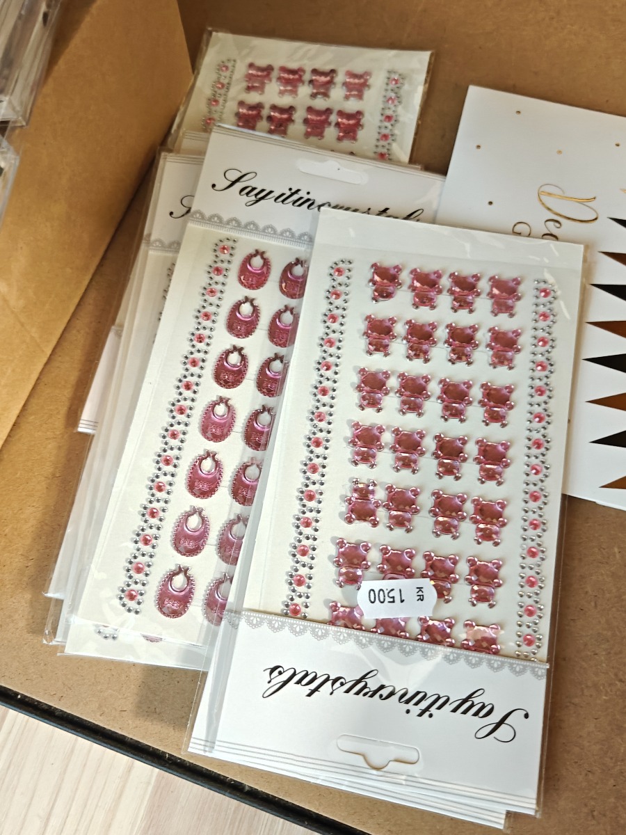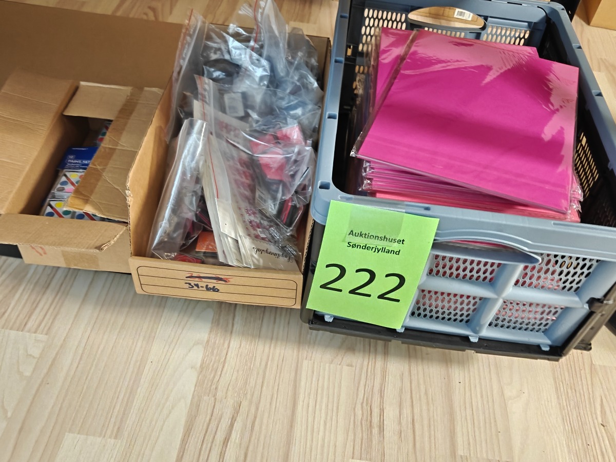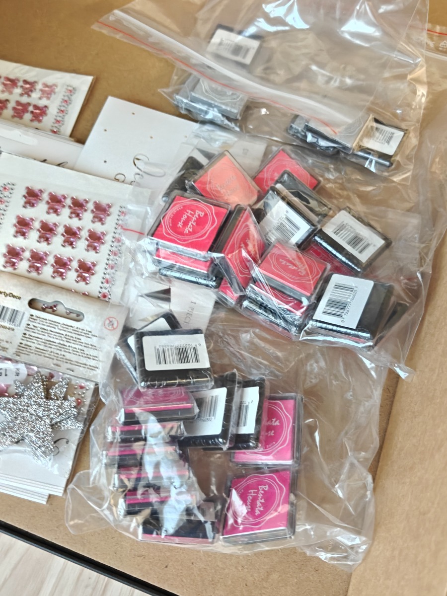 Diverse krea artikler. Karton, vandfarve pakker, stickers og pads i mange farver. Varerne stammer fra lukket webshop. Alle varer er ubrugte og af rigtig god kvalitet.