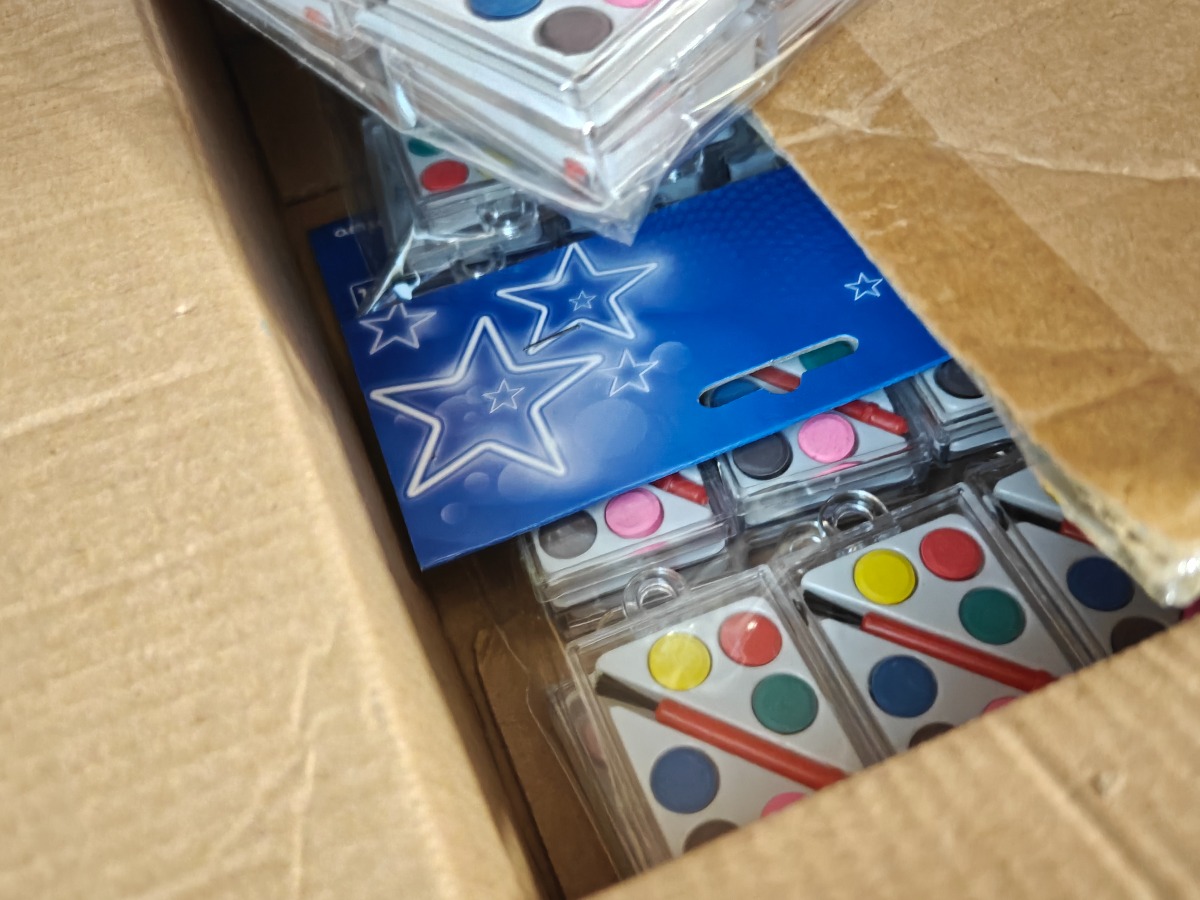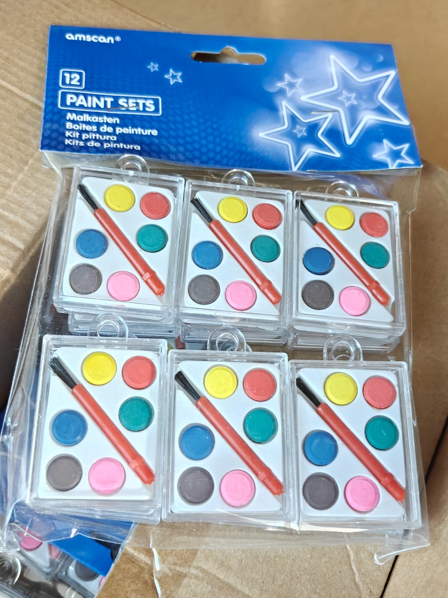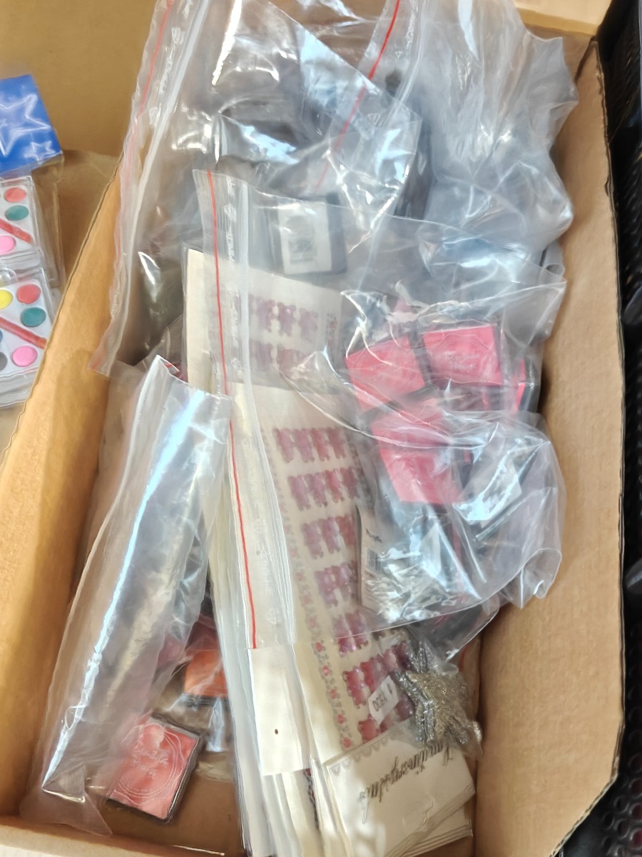 Diverse krea artikler. Karton, vandfarve pakker, stickers og pads i mange farver. Varerne stammer fra lukket webshop. Alle varer er ubrugte og af rigtig god kvalitet.