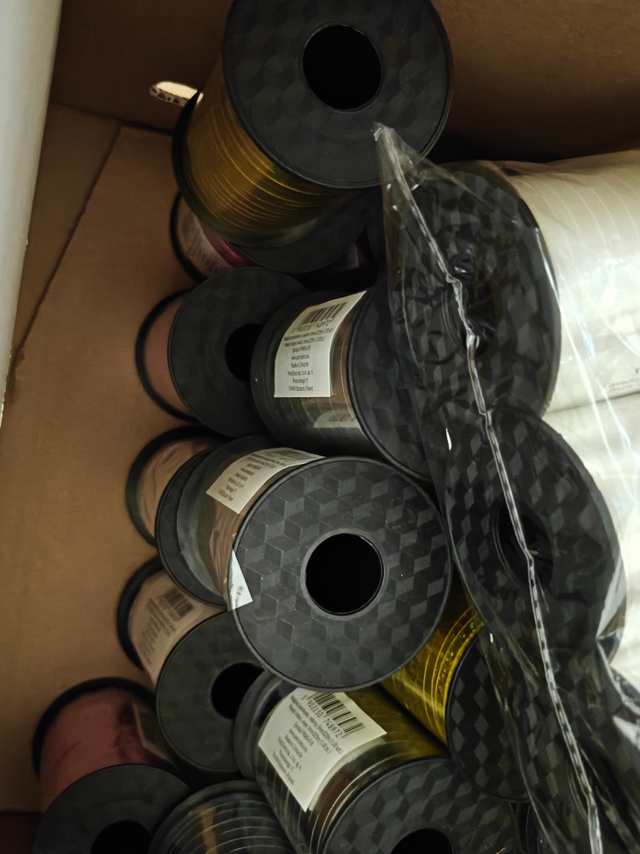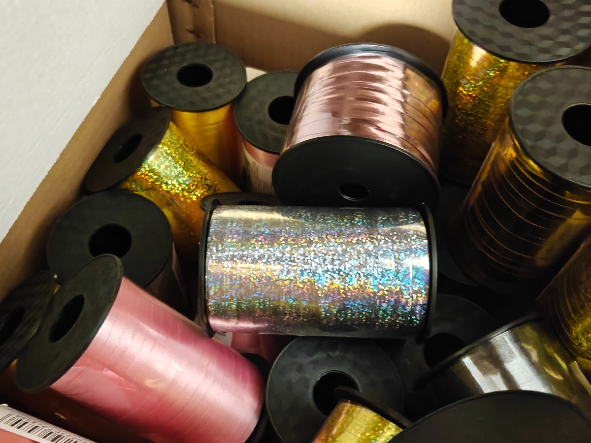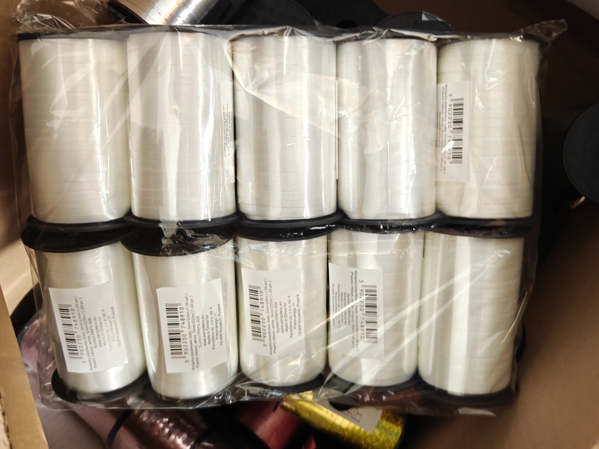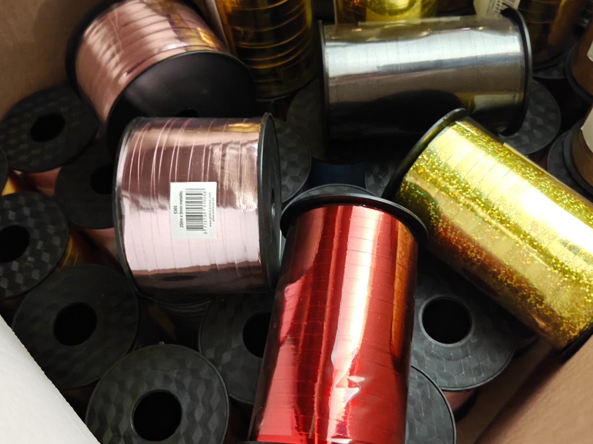 Parti gavebånd i mange farver og bredder. Varerne stammer fra lukket webshop. Alle varer er ubrugte og af rigtig god kvalitet.