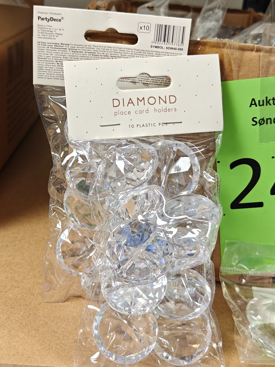 Parti pynte diamanter. I flere farver og størrelser. Varerne stammer fra lukket webshop. Alle varer er ubrugte og af rigtig god kvalitet.