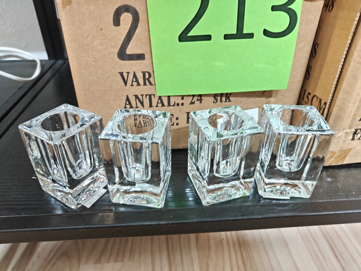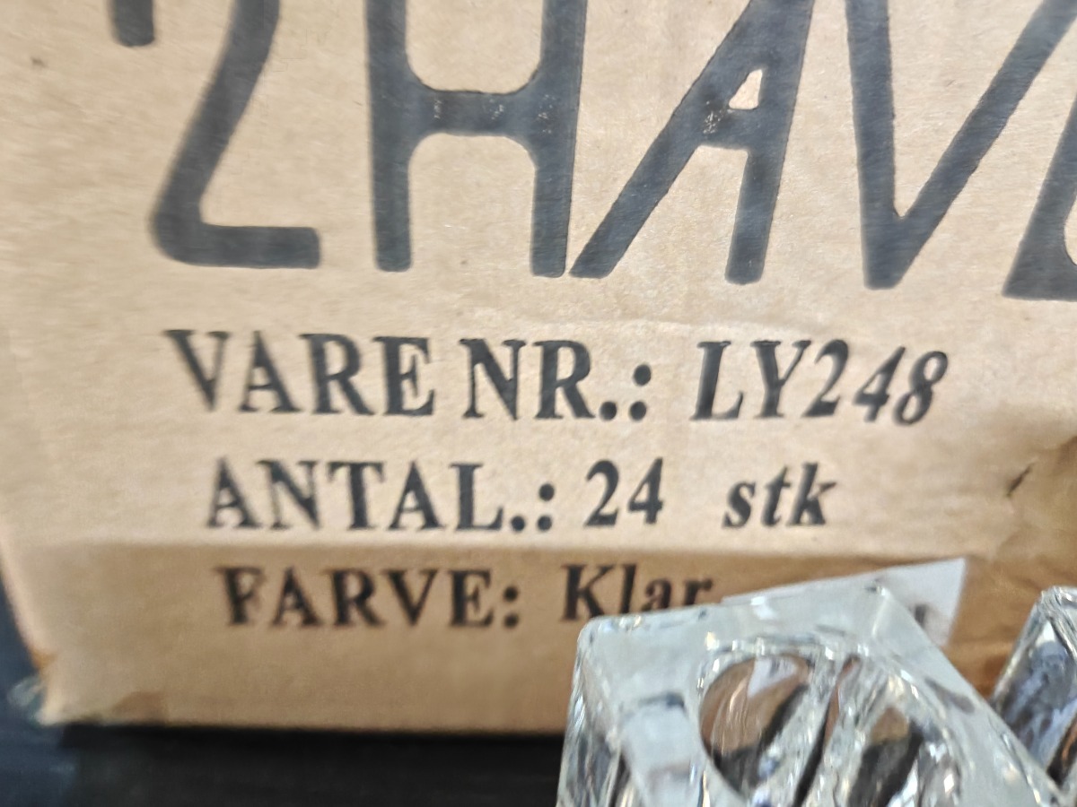 Glasstager til krone lys (47). Ca 4 x 7 cm. Varerne stammer fra lukket webshop. Alle varer er ubrugte og af rigtig god kvalitet.