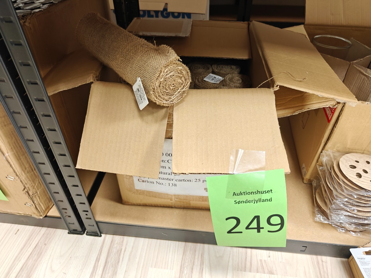 Bordløber jute (20). Måler 25 cm x 5 M. Varerne stammer fra lukket webshop. Alle varer er ubrugte og af rigtig god kvalitet.