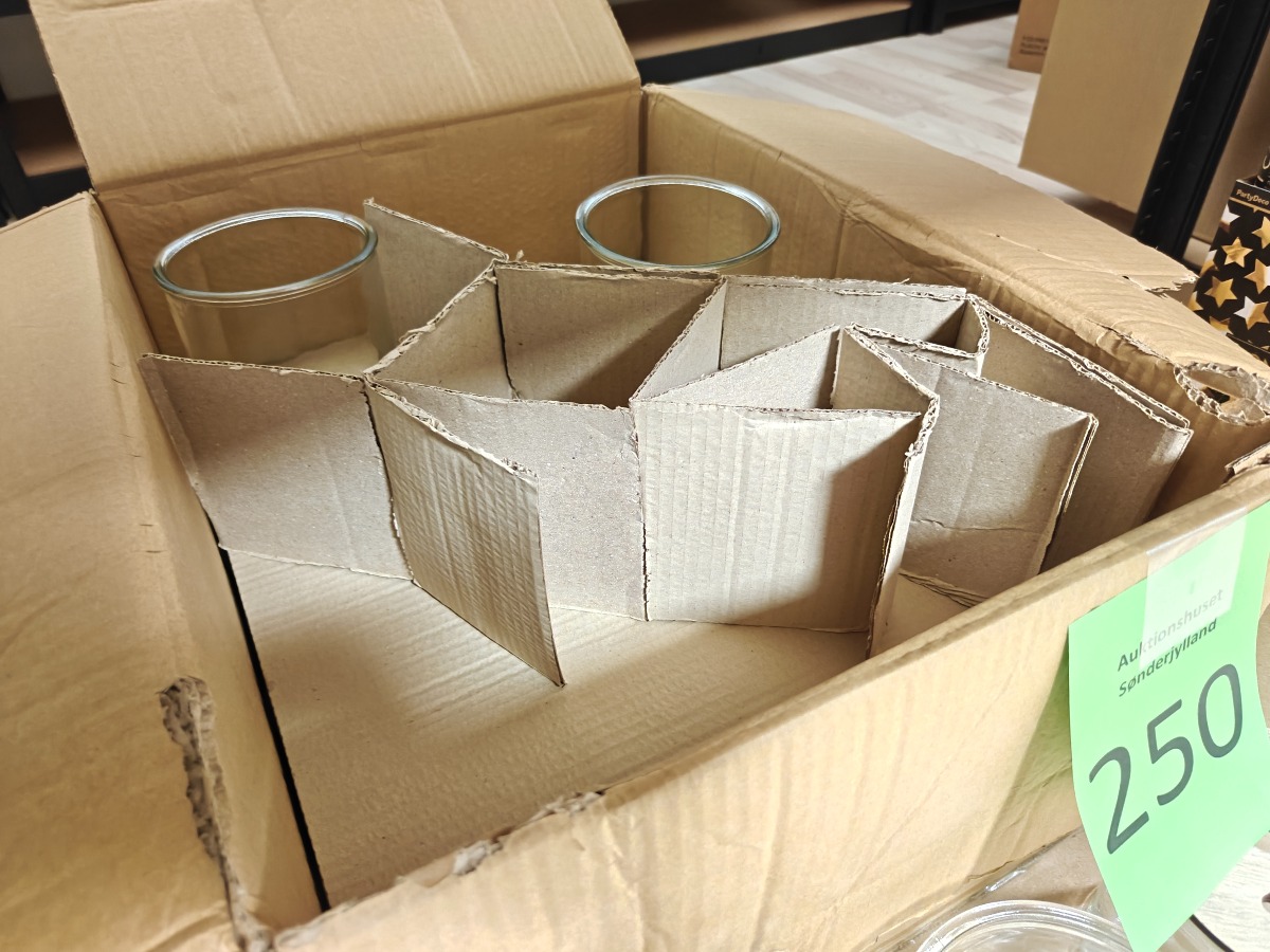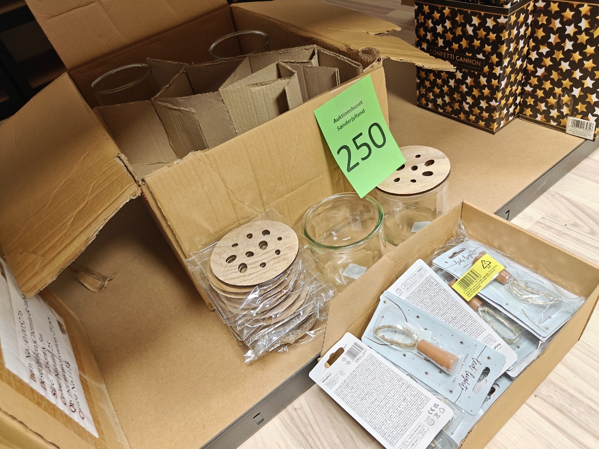 Parti glas(28), låg(15) og lyskæder(20) Varerne stammer fra lukket webshop. Alle varer er ubrugte og af rigtig god kvalitet.