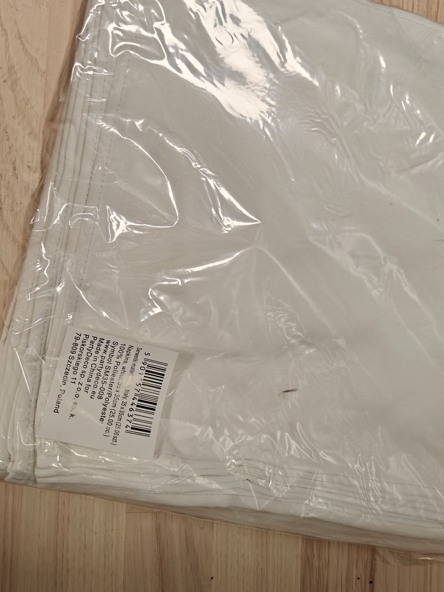 Hvide stofservietter (100). Varerne stammer fra lukket webshop. Alle varer er ubrugte og af rigtig god kvalitet.
