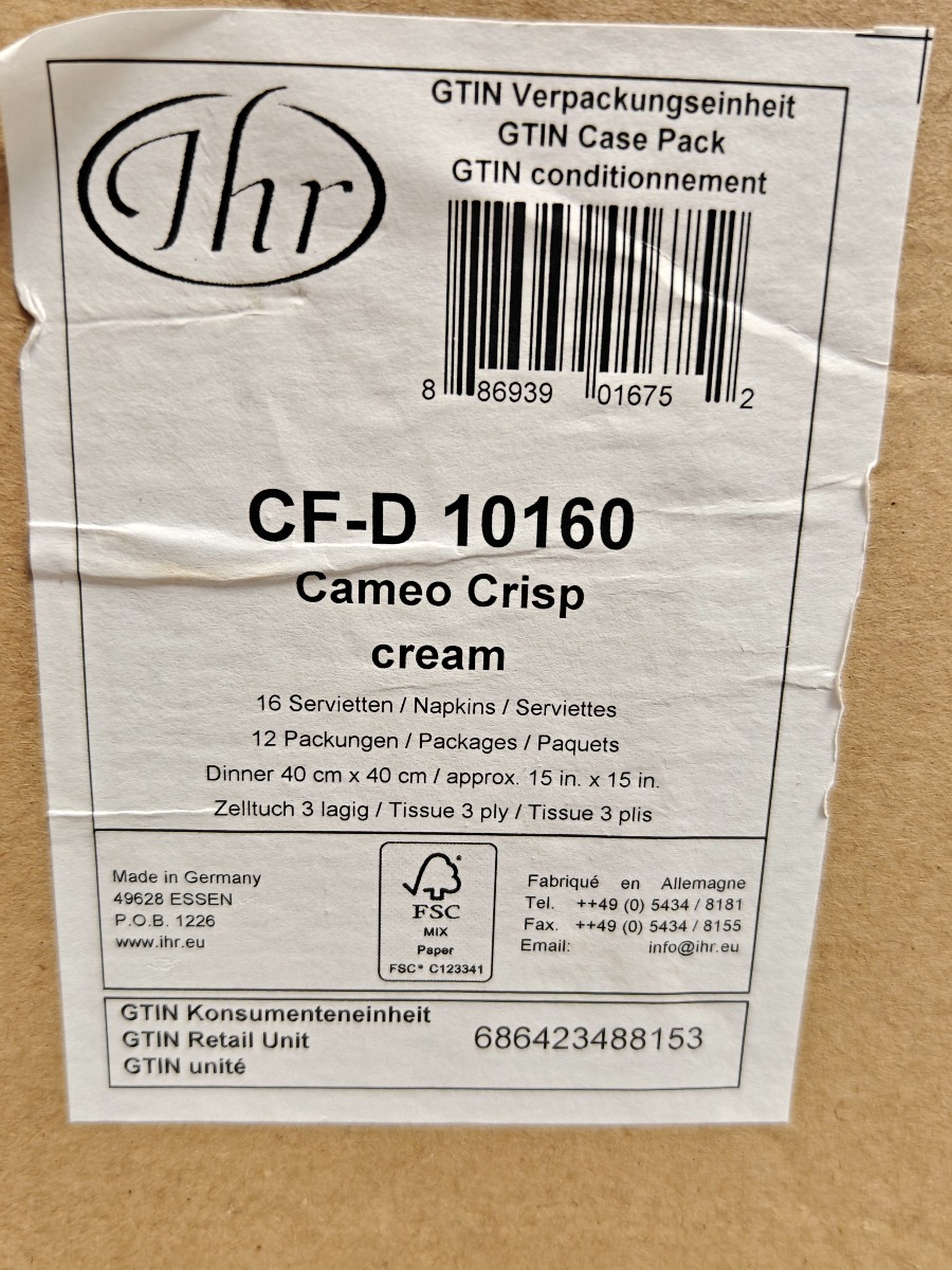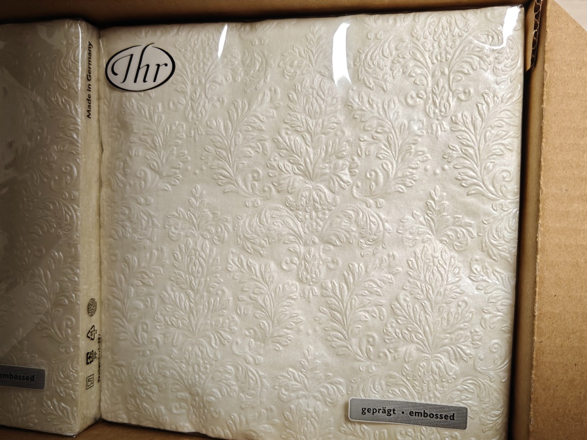 Tyl (68)og servietter. (12) Tyl måler 0,08 x 20 M. Servietter er fra Ihr. Varerne stammer fra lukket webshop. Alle varer er ubrugte og af rigtig god kvalitet.
