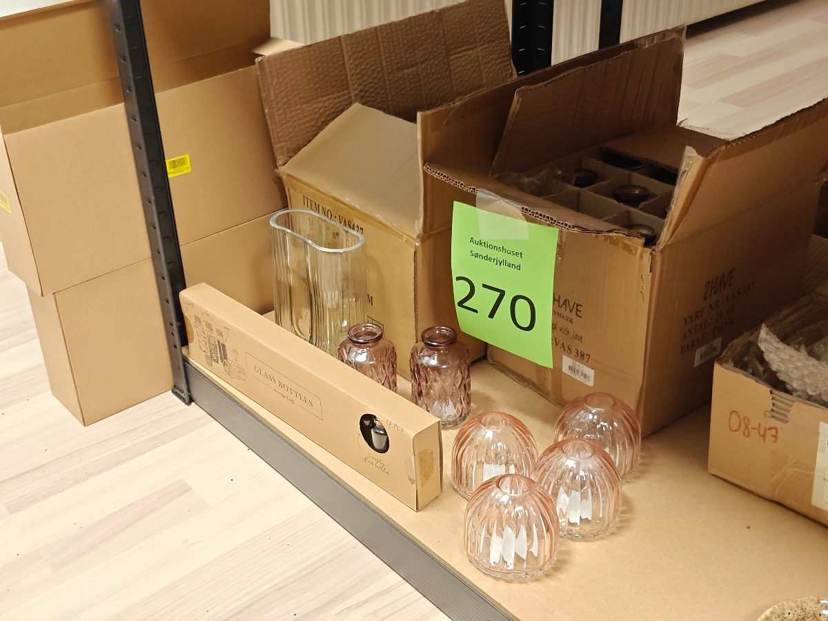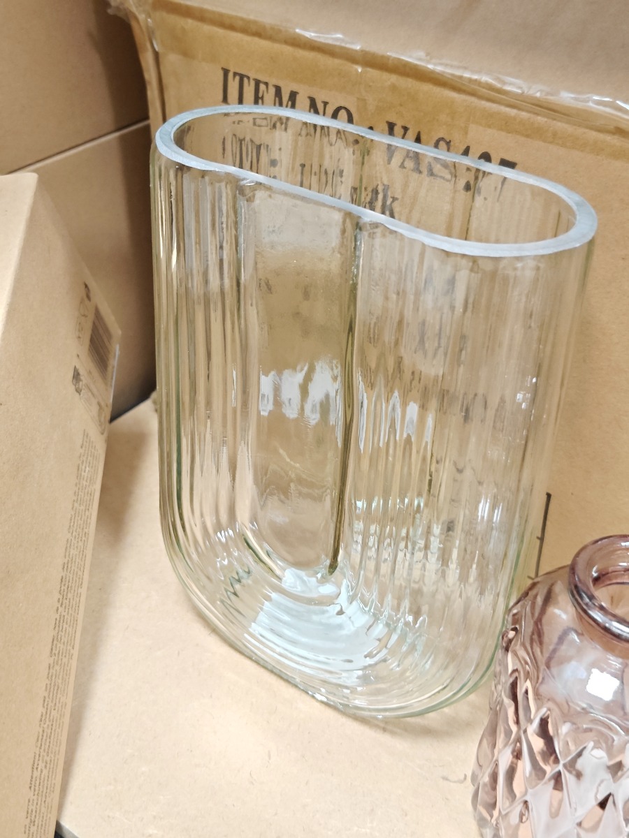 Parti glasvaser. Varerne stammer fra lukket webshop. Alle varer er ubrugte og af rigtig god kvalitet.