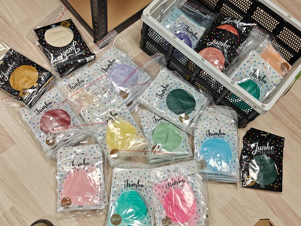 Parti jumbo balloner (90). Mange farver og Ø 1 M. Varerne stammer fra lukket webshop. Alle varer er ubrugte og af rigtig god kvalitet.